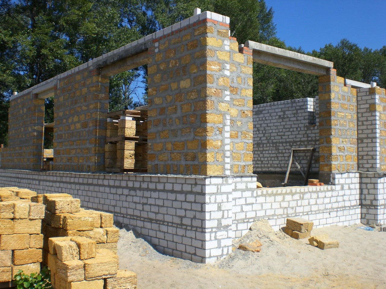 MrRG Опубліковано: 2 січня 2013 Автор Поділитись Опубліковано: 2 січня 2013 Как и обещали, продолжение про то как строили! Что мы не учли, при подготовке к строительству, так это стоимость перемычек. Вроде бы мелочь, но в смету не забили, и поэтому вылезла хорошая сумма. Решили брать с завода ЖБИ, дороже, но такого качества при самостоятельной заливке мы бы не получили. А учитывая ширину проемов и то, что большинство перемычек будут несущими, и вовсе отказались от мысли делать их самостоятельно. Плюс ко всему, время монтажа готовой и перемычки изготовленной самостоятельно существенно отличалось, а осень уже была не за горами. Первые перемычки легли на гараж, т.к. он ниже дома на 60 см, и работы по нему шли быстрее. Колонну делали как и в доме, из белого кирпича выкладывали опалубку, а внутри армировали и заливали бетон. Колонной мы разделили два въезда в гараж. Причин несколько... таким образом усилили конструкцию, но, что более важно, решили, что зимой открывать одни ворота в гараж будет разумнее. Конечно мы понимали, что теряем какую то сумму денег, т.к. ворот будет двое, но все расчеты показывали, что это не настолько критично. 2 Посилання на коментар Поділитися на інших сайтах More sharing options...