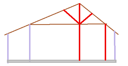 Алекар Опубліковано: 22 січня 2013 Автор Поділитись Опубліковано: 22 січня 2013 вот картина о которой я думаю. Если установить вертикальную колонну по центру крыши максимально нагруженную, возможно поддомкратить. Горизонтальная балка получит дополнительную опору, кроме этого поставить диагонали под 45 градусов к скосам. Подстраховать точку крепления горизонтали с правой стороны там где она выше и не опирается на внешнюю стену. Насколько я понимаю этим мы снимем часть горизонтально *распирающей* нагрузки и пере направим на вертикальный вектор который распределится на монолитную плиту перекрытия. Колонны можно установить 2 по внутренним стенам коридора и если нужно то 2 по краям к внешним стенам. Тогда есть вариант установить ещё 2 горизонтальных балки перпендикулярно к существующей для страховки от бокового крена крыши на фронтальные стены. Но это уже перебор наверно Такое решение можно легко связать декором с отделкой комнат и особо мешать не будут. Я сопромат давно учил и формул не помню но в теории... Посилання на коментар Поділитися на інших сайтах More sharing options...