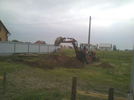 SamStroil Опубліковано: 25 січня 2013 Автор Поділитись Опубліковано: 25 січня 2013 Я постараюсь более детально выложить процесс строительства по этапам с комментариями и финансовыми ориентирами. Итак, участок разделен, новый акт на руках, стройпаспорт получен, повидомлення отправлено и для верности вручено лично Головному державному инспектору. Все формальности соблюдены. Начинаем. Для начала убираем грунт под пятном дома до отметки примерно -1,1..1.2. Из-за небольшого уклона толщина убираемого слоя от 0.9м до 0.4м. Прошедший дождик портит всю малину. Размечаем траншеи под ленту Бульдозером откапываем траншеи под гаражно-хозяйственной частью. Дело в том, что пол гаража ниже уровня земли на 30см, а уровень подошвы фундамента в этом месте глубже на 40см, чем у основной части дома. Размечаем и откапываем траншеи под ленту в размер. Ширина в разных местах разная - от 0.4 до 0.7?м. Разметку делаю лично, готовые траншеи проверяю шаблонами и дорабатываю сам. Все-таки страшновато - не узковата ли лента. Умом понимаю, что хватит и еще останется, но после общения с претендентами на подряд и с соседями, у которых ширина фундамента около метра - как-то не по-себе. Выстилаем готовые траншеи ПЭ пленкой, вяжем и укладываем арматуру 4*ф12 30*25см. Заказываем и завозим бетон 15м3. Наслаждаемся техношоу. Радуемся, что насос обошелся вполовину, т.к. коллега по соседству тоже льет себе цоколь из этой же доставки. Фууух, пока бетон дубеет, идем подбивать бабки... 3 Посилання на коментар Поділитися на інших сайтах More sharing options...
