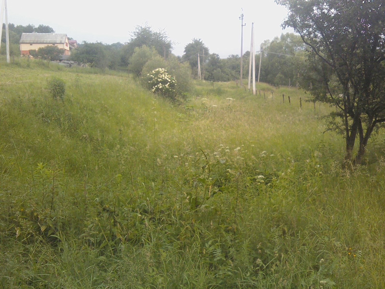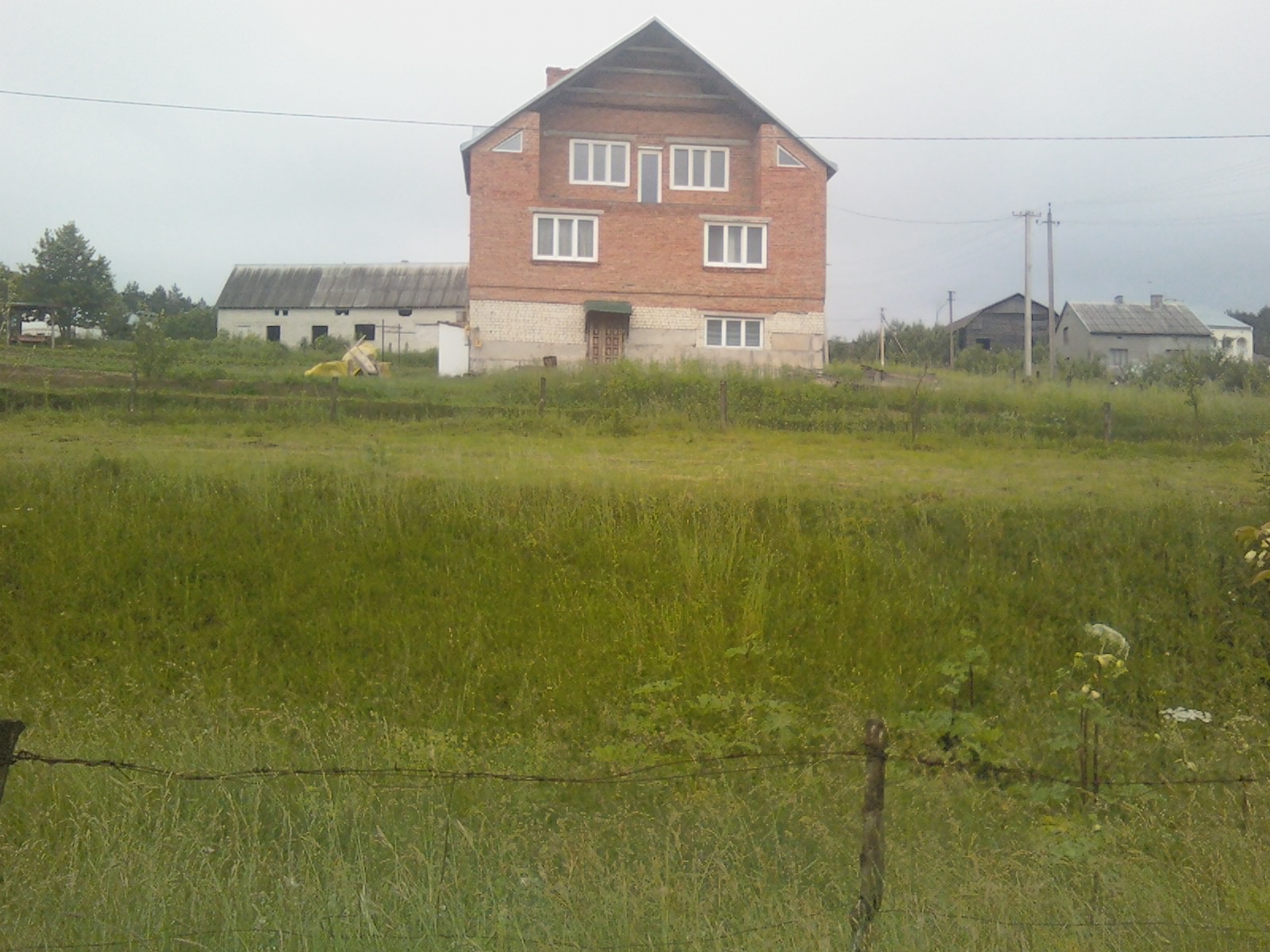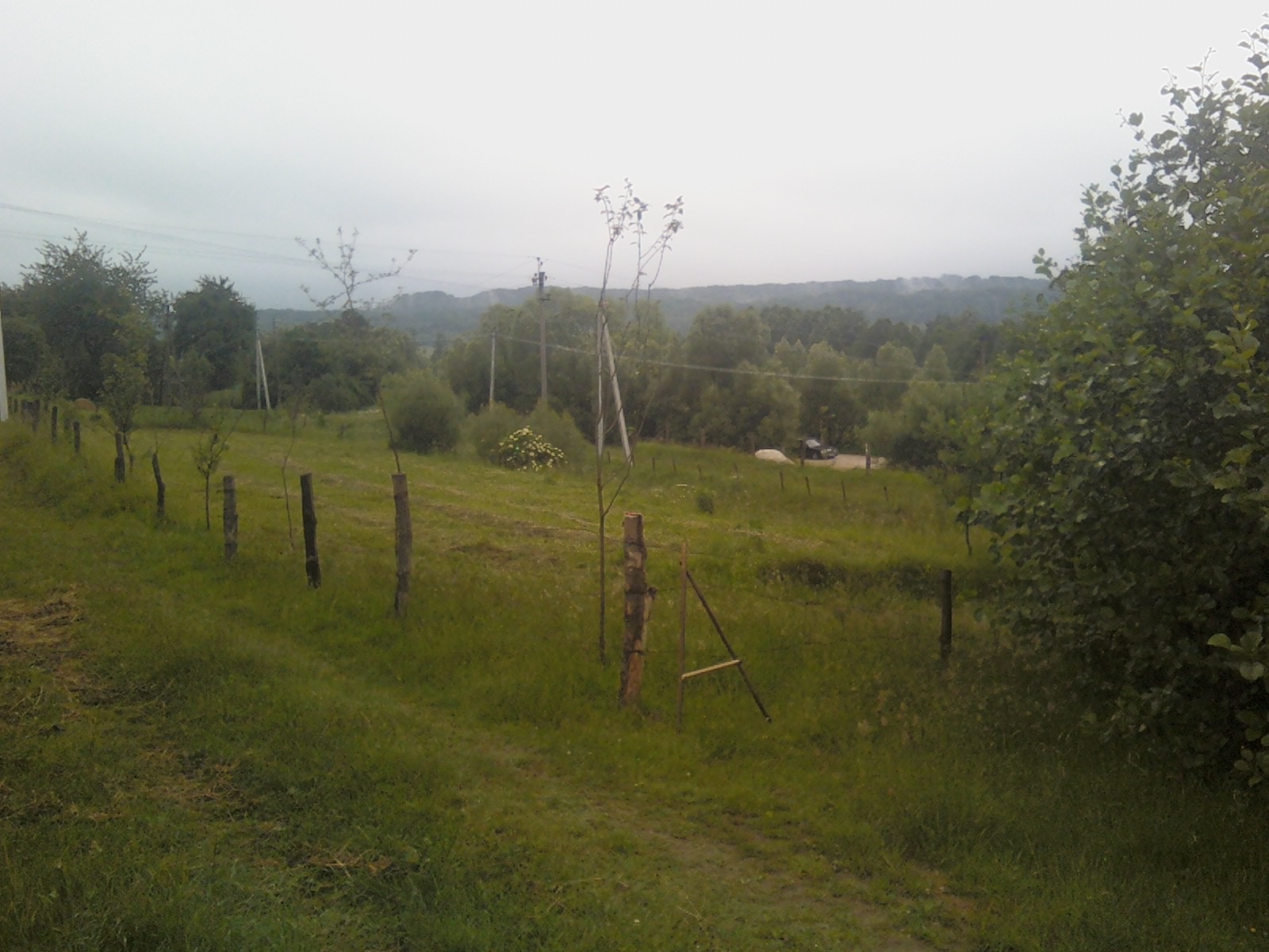 Участок огорожен столбиками, заканчивается на месте электро опор.Яма, (перепад высоты) это бывшая ж\д дорога, узкоколейка.Грунт преимущественно песчаный - активно растут сосны.Вода - минимум 22 метра.По строительный нормам нужно отступить од дороги, тогда край дома будет как раз возле ямы.Территориально Львовская обл., 20 км от Львова в сторону Польши.