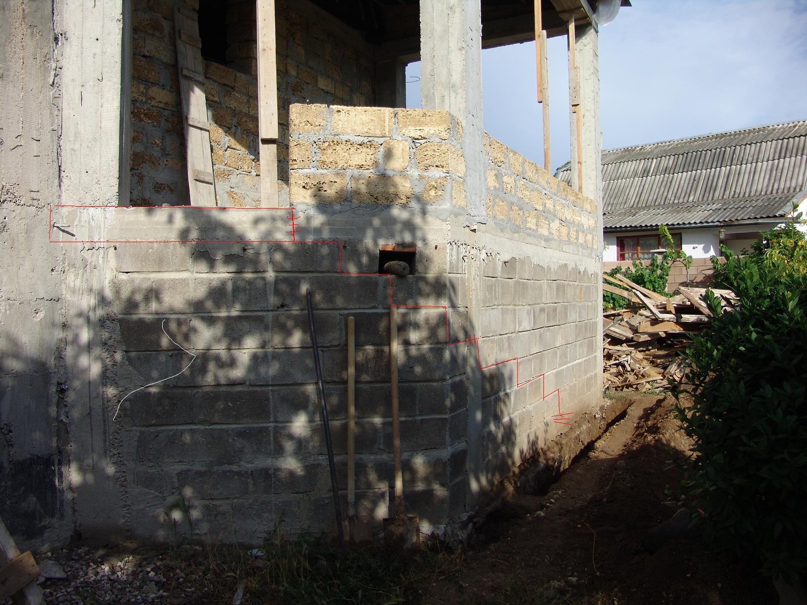 Вопрос 1 . Как правильно сделать стык площадки со стеной дома ?