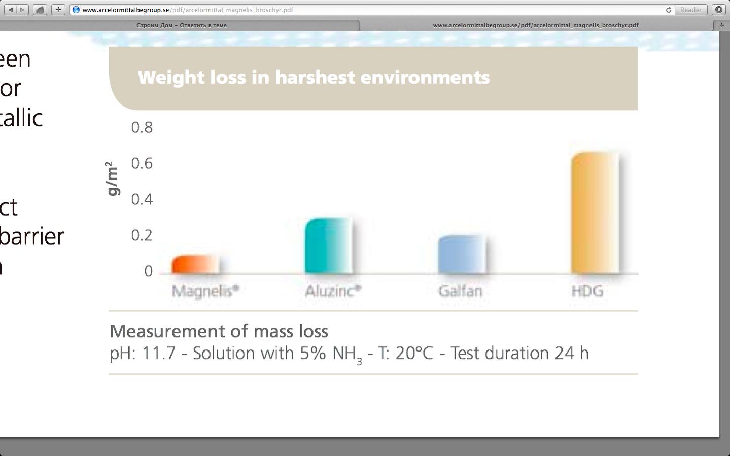 TERMIT Опубліковано: 31 серпня 2013 Поділитись Опубліковано: 31 серпня 2013 Очень хорошо, что Вы верите Арселору. Как Вы прокомментируете документ ArcelorMitall, который находится по ссылке (ссылка устарела) После можно обсудить и особенности вольного перевода. Как можно быть настолько наивным, предполагая, что никто не удосужится прочитать полностью документ? Вы пытаетесь грязно манипулировать. И вот факты (базируясь на ссылке, которую Вы указали, как источник): 1. Потеря веса в жестких условиях (см снимок экрана), стр 4 - 0,2 г/м2 гальфан против 0,4 г/м2 алюцинк. Учитывая, что покрытие гальфан имеет 300 г/м2, а у алюцинка было 185, то простая математика показывает - гальфан 300 в 3,24 раза надежнее! 2. Опираясь на сводную таблицу на странице 7, можно утверждать, что гальфан выигрывает по долговечности в зеленой зоне, в районе ферм и лесов, немного хуже ведет себя в морской зоне (но стоит плюс, следовательно, функции защиты хорошие), зато намного лучше защищает срезы катодной защитой (что, по сути, является ключевым), а также, что важно, обладает намного лучшей стойкостью к коррозии в местах сгибов. А в композитной черепице важнейшим свойством, требующимся от стали, как раз и является катодная защита - в местах срезов и прибивания гвоздей. Потому как прямая защита не востребована до тех пор, пока сталь закрывают посыпка и акрилат, да еще и грунтовка (в случае с гальфаном, у алюцинка такой защиты нет). Поэтому я Вас очень прошу, перестаньте быть смешным, высасывая из пальца какие-то левые факты, пытаясь опорочить производителя. Посилання на коментар Поділитися на інших сайтах More sharing options...