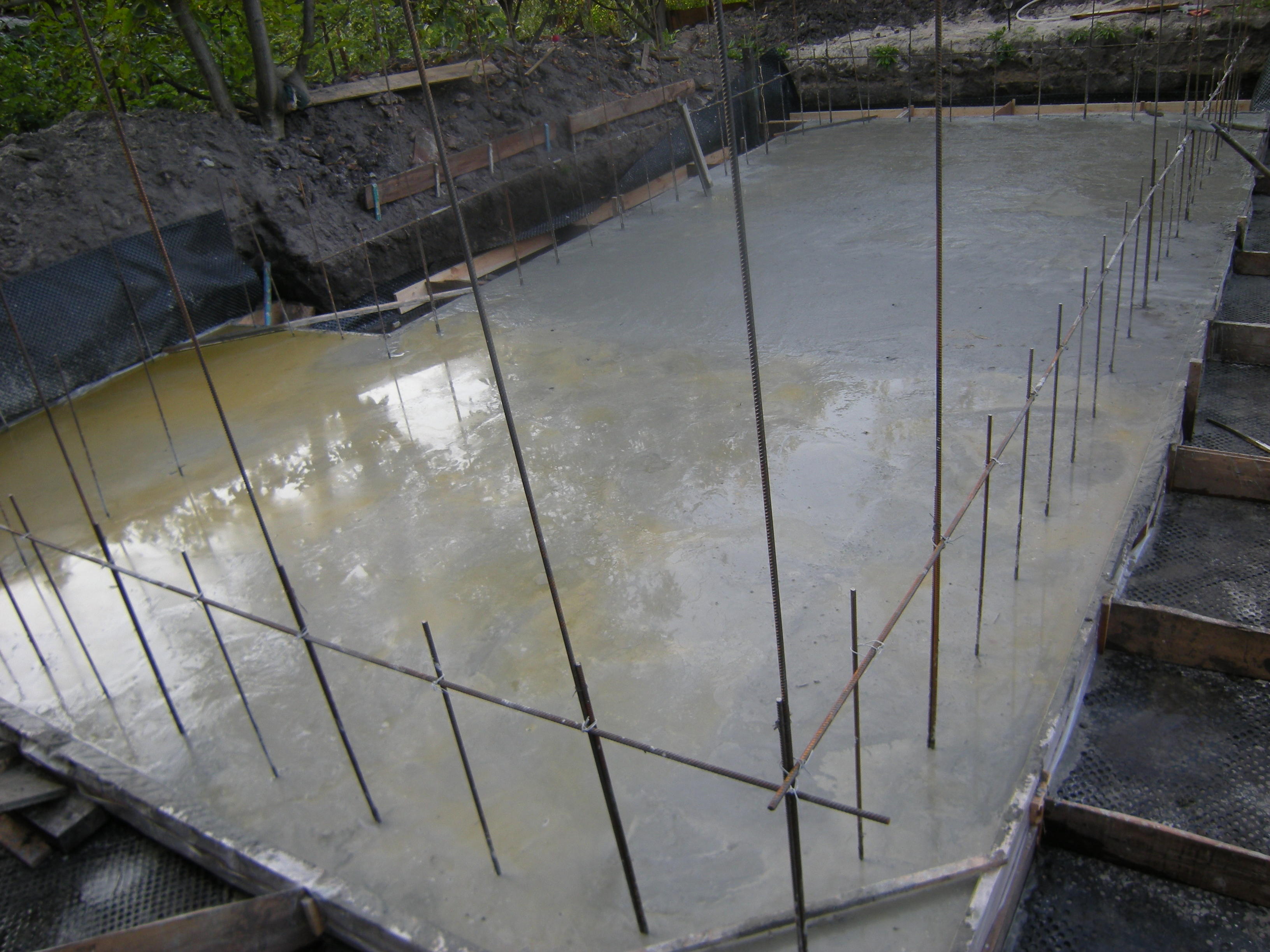 Igor1959 Опубліковано: 28 серпня 2013 Автор Поділитись Опубліковано: 28 серпня 2013 В разделе Фундаменты идут баталии по поводу того, что лучше-заводской бетон или из бетономешалки.Согласен с теми, кто считает заводской лучше, НО!Заказал я для своей плиты 9,5 кубов бетона. Два миксера, один на 5, другой на 4,5. Не знаю, как там они его на РБУ делают, но тот бетон, что был в 5-тикубовике оказался густым, а тот что в 4,5 кубовике-слишком жидким.Сначала приехал тот, что с густым, и мы еле расстащили бетон и успели завибрировать. Бетон быстро схватывался, и посередине плиты я даже вибратором не смог его разровнять, так холмиком и осталось. Второй же миксер-ну сплошная вода! Смотрите фото. Кажется мне, что на 5 кубов на РБУ залили воды как на 4,5, вот оказался он тугим, а там где 4,5-залили воды как на 5. Другого объяснения у меня нет. Представте мое состояние! Плита длиной 9м, и как раз посередине такая ерунда, да еще и на таком грунте как у меня! Бетон, конечно, застыл, и на ощупь:D весьма твердый.Но как плита поведет себя при нагрузках? Посилання на коментар Поділитися на інших сайтах More sharing options...