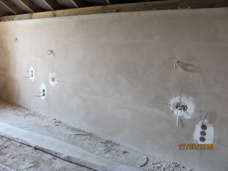 Договорился с мастерами о штукатурке, с понедельника начинаем. Решили штукатурить известково-песчаным раствором. Буду начинать с первого этажа.