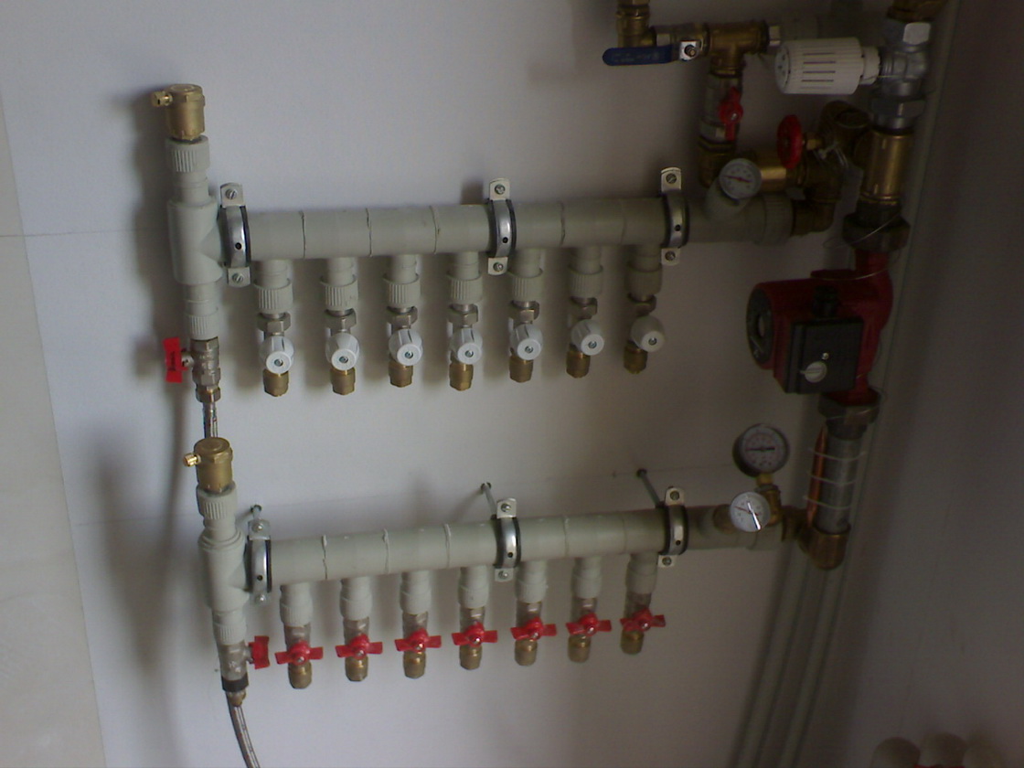 mans_2008 Опубліковано: 8 лютого 2012 Поділитись Опубліковано: 8 лютого 2012 вот спаял следующий колектор ТП (соседу) большое почтение Мураве, приславшему термоголовку и термокран по фантастической в наших широтах цене. колектор на 7 контуров получился меньше моего 6-ти контурного. еще и термометры красивенькие нашел. насосно-смесительную группу вынес вперед для уменьшения ширины конструкции. Прошу критики и дополнений! А сколько нынче стоит термоголовка с термокраном? Как по мне - самая простая схема реализации без всяких 3-х ходовых клапанов. Схема №4 вот тут: www.laintech.ru/public-open22.html А если в место термоголовки с термокраном поставить обычный вентиль - будет работать схема? Настройка будет сложней? Посилання на коментар Поділитися на інших сайтах More sharing options...