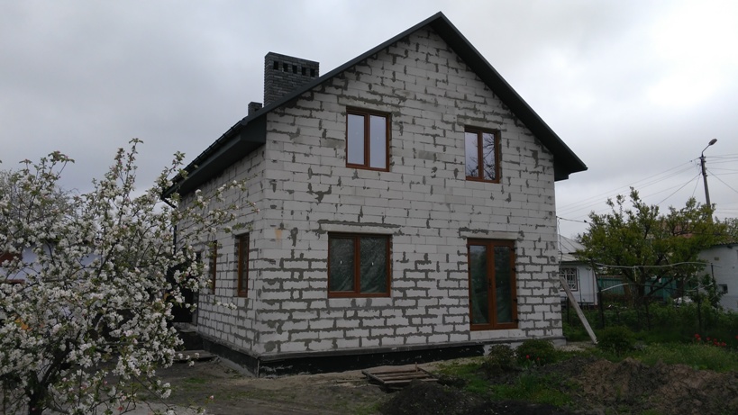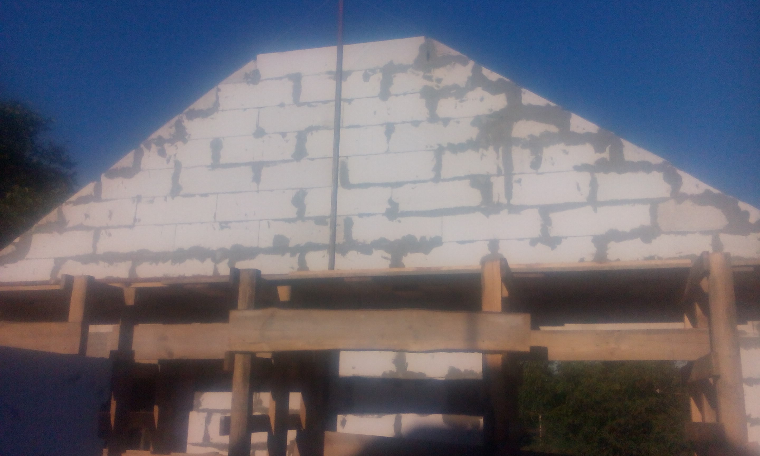 kramar09 Опубліковано: 26 квітня 2016 Автор Поділитись Опубліковано: 26 квітня 2016 Двумя сообщениями выше мы закончили на том, что были в процессе сооружения фронтоны на мансардном этаже. Отмечу, что покупка заводских перемычек себя оправдала - за час перекрыли 4 окна на втором этаже (перемычки поднимали на руках вдвоем с братом жены). Если бы мостили опалубку (U-блоки или самодельный аналог) и заливали, было бы дольше. Когда подошли к этапу заливки армопояса под мауэрлат, было решено сделать его замкнутым - он проходит по фронтонам над окнами. Вместо U-блоков ставили по краям блоки-сотки100, с внешнего края экструдер20, внутрь четыре прутка арматуры 10 и бетон. Также армопояс замыкается по центральной перемычке на втором этаже, с помощью которого были оформлены дверные проемы в комнату и ванную. Для выравнивания фронтонов была натянута шнурка на стальную трубу. Выкладывание блоков-треугольничков для фронтонов - творческая работа )), но как раз пошли в работу блоки со сколами, обрезки и т.д. Также до уровня человеческого роста на втором этаже тесть выложил трубу вентканалов (5 штук) и вентканал топочной. Далее по трубам работали двое каменщиков, потому что там высота - более 7 метров, мама не горюй. Итого - над коробкой работали я, тесть и еще помогал брат жены. С выходными и отпуском все заняло ровно 3 месяца. Далее будем говорить о трубах и крыше ) Посилання на коментар Поділитися на інших сайтах More sharing options...