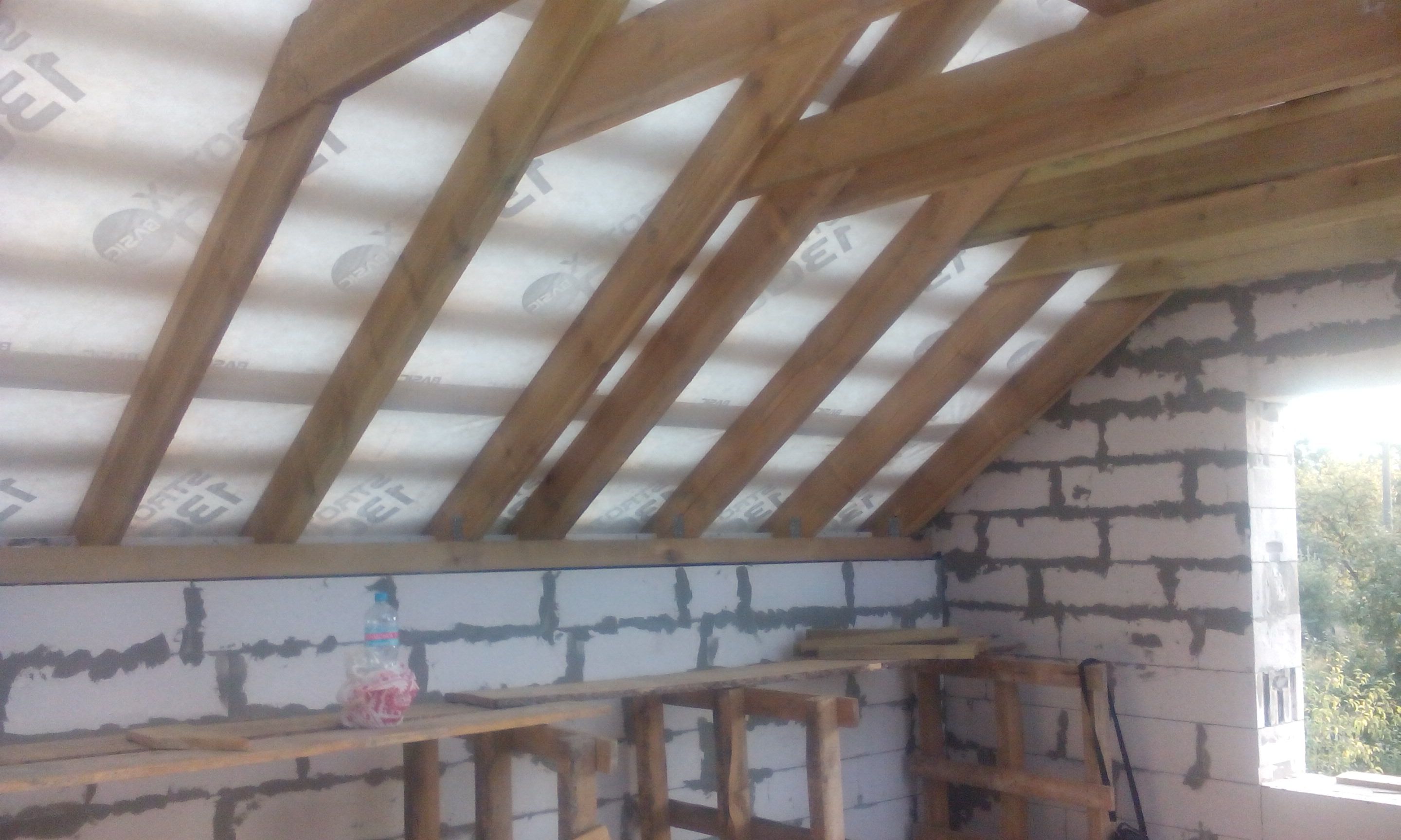 kramar09 Опубліковано: 26 квітня 2016 Автор Поділитись Опубліковано: 26 квітня 2016 После завершения кладки фронтонов, нашел бригаду, которая подписалась на завершение кладки вентканалов в виде труб, установки стропильной системы и накрытия коробки металлочерепицей. Бывший в наличии кирпич каменщик сразу забраковал (я купил ранее пять паллет красного кирпича какого-то местного производителя, другой времени не было искать. На внутреннюю кладку - нормально, но на внешнюю, даже с последующей штукатуркой - оказалось не годится). Изначально я планировал: просто кладка кирпича (геометрия его там была просто адъ), штукатурка и отделка металлопрофилем под цвет крыши. В этой придуманной мной конструкции меня только смущало возможное появление конденсата между трубой и металлопрофилем. Слава Богу, каменщик был категоричен - надо нормальный кирпич. Поехали искать. Нюанс в том, что крыша планировалась цвета "графит". На стройскладах была найдена последняя паллета донецкого фагота именно искомого цвета, с одной стороны для красоты кромки сбиты. Параллельно, пока возводились трубы и стропилка, исколесил всю область в поисках приемлемой цены и поставщика металлочерепицы. Остановился на немецком металле (цвет графит), который гнет Термостил (Черкассы). Пока искал металлочерепицу, ребята возвели трубы и установили стропильную систему (6000*200*50). На обработку всего дерева ушло порядка 80 л готового антисептика-огне-биозащиты. Затем натянули супердиффузионную мембрану, набивая сразу контробрешетку (50*50*2000). Стыки, где нахлест, проклеивали специальной лентой Момент (брал в Эпике по 78 грн, только 780 грн на эти стыки ушло). Также по инструкции установили два мансардных окошка - в спальне и ванной на втором этаже. Обходы труб и металлочерепицу прикрутили за два дня. Кроме ветровой, лобовой планок и конька брал еще диффузионный барьер на конек. Подшиву свесов крыши делали чуть позже. Поездил, посмотрел цены на софиты и решил свесы делать из того же металла, что и металлочерепицы, только профильного. Для продувания подкровельного пространства места между мембраной и черепицей (между контробрешетинами) остались открытыми, только затянули их сеткой от воробьев, чтобы не лазили. Почему я об этом пишу, потому что строители уже меряли отрезать металл на свес, с тем, чтобы он доходил до самой металлочерепицы. На агрументы, что смысл кровли с контробрешеткой - чтобы была вентиляция подкровельного пространства, было мычание по типу "хозяин - барин" и вообще, мы первый раз видим такие заморочки. Сразу со свесами сделали и водосточку. Брал Брыза. Писали, что на солнце трещит, я не верил )) Трещит, но редко, негромко и внимания не обращаешь )) По коммуникации со строителями. Мой опыт. Если какие-то работы на объекте отдаются на аутсорсинг - ваше присутствие в какой-то форме все равно обязательно. Приехать утром, посмотреть, спросить как дела, что докупить и т.д. - это минимально. Оптимально присутствовать и заниматься своими делами (дело всегда найдется). Присутствие хозяина, вероятно, не только дисциплинирует строителей, но и ведет к кайдзен-активности (если кратко - стремление к перфектности). С другой стороны, у них свое понимание технологий, которое может нередко идти вразрез с требованиями снипов, дбн и здравого смысла. Смекалка и опыт ремесленника - это супер, но я тоже не зря пере