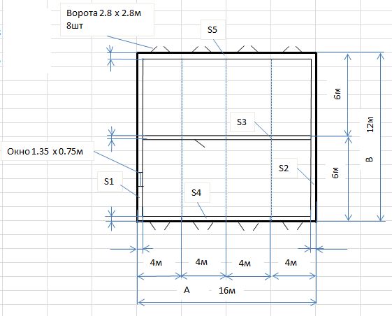 vovan003 Опубліковано: 13 січня 2015 Поділитись Опубліковано: 13 січня 2015 Выбор материала для постройки стен для 2х этажного гаражного бокса. Всем привет! Планирую построить 2 больших гаражных бокса, прошу помочь разобраться с некоторыми вопросами. Размеры строения: 16 х 12м, высота стен 4м В дальнейшем планируется постройка 2го этажа на весь периметр. Обязательное условие наружная отделка стен белым силикатным кирпичом(Стены S1 S4 S5 ), ЖБ плиты перекрытия на крышу (пустотелые). Приблизительный эскиз добавил. Стены S1 S4 S5 планируется делать в пол кирпича белого силикатного шириной 12см (возможно даже в четверть 6см,из половинок), и блока шириной 20см в один ряд (называют в пол кирпича), сверху армопояс на всю ширину стены 12см облицовка+20см блок. = 32см и высотой 20 см. Вопрос видел у людей делают не армопояс, а выкладывают в 2-3 ряда обычного рядового кирпича, а сверху укладывать бетонные плиты? (Как я понимаю так делать нельзя) Стену S2 планирую сделать шириной 20см (как говорят в пол блока) Данная стена не будет несущей. Стенe S3 планирую сделать шириной 40см (как говорят в 1 блок), укладывая в 2 ряда блоков шириной по 20см. Данная стена будет несущей. На нее будут опираться плиты. Так же стены S4, S5 будут несущие, на них будут опираться плиты. В данных стенах будут установлены ворота 8шт размером 2,8х2,8м, над воротами отлиты из бетона перегородки. Пообщался со строителями, и был сильно расстроен. Каждый гнет свое, начина от того что плиту перекрытия можно положить и на 5 см, и на 10, но в книгах я встречал рекомендуемая минимальная длина должна быть 20см, заканчивая что на газоблок можно укладывать плиты и без армопояса, просто подложив арматуру с раствором. Рассматривал варианты: - Газоблок прочность 30кг.см (заявлено производителем) Пришел к выводу что для несущих стен его лучше не использовать, плюс выдержать правила кладки не каждый каменщик сможет, много нюансов по подгоне каждого блока, затирке его по уровню и тд. - Пеноблок Вообще не понятно, где купить нормальный, так как его могут делать в любом сарае. - Керамзитоблок от Ковальской Интересный вариант, из минусов тяжелей Газоблока, не нашел в продаже полнотелых. Нашел от производителя Ковальская но прочность у них М50 (хотя в России люди пишут что строят из марки М75-150) И по словам технолога данный блок нельзя использовать для несущих стен, мол он для этого не предназначен, и в нем большие пустоты. -Бетонный блок от Ковальской Интересный вариант марка М100, есть размер с шириной 190. Из минусов холодный, тяжелый . По внешнему виду, сделан качественно. (смотрел в Епицентре) По словам технолога, данный блок нельзя использовать для несущих стен, мол он для этого не предназначен. -Бетонный блок Фратеко 20х20х50 На сайте у них указано: Блоки используют в соответствии со строительными нормами для несущих и ограждающих конструкций жилых, общественных и производственных строений. Проектирование конструкций осуществляют в соответствии с СНиП ІІ-3, СНиП ІІ-22, ДСТУ БВ.2.7-7-94 и РК №13/07-БСД-ЕКБ. Мол можно использовать для несущих стен. Но по внешнему виду совсем не впечатлили, тонкая стенка кирпича, большие воздушные отверстия. По сравнению с блоком от Ковальской качество по внешнему виду на порядок ниже. Вопросы: 1.Вопрос в том почему блок Фратеко можно использовать под несущую стену, а от Ковальской нет? 2.Вопрос видел у людей делают не армопояс, 
