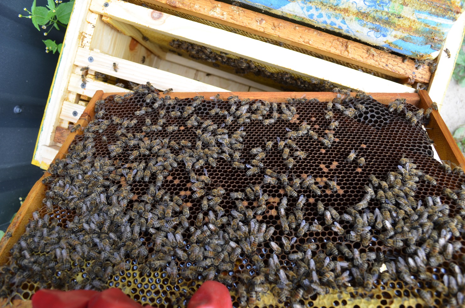 Рамка 1. У вулику з самого початку. Соти лише з медом? І що це таке жовте з бджолами?