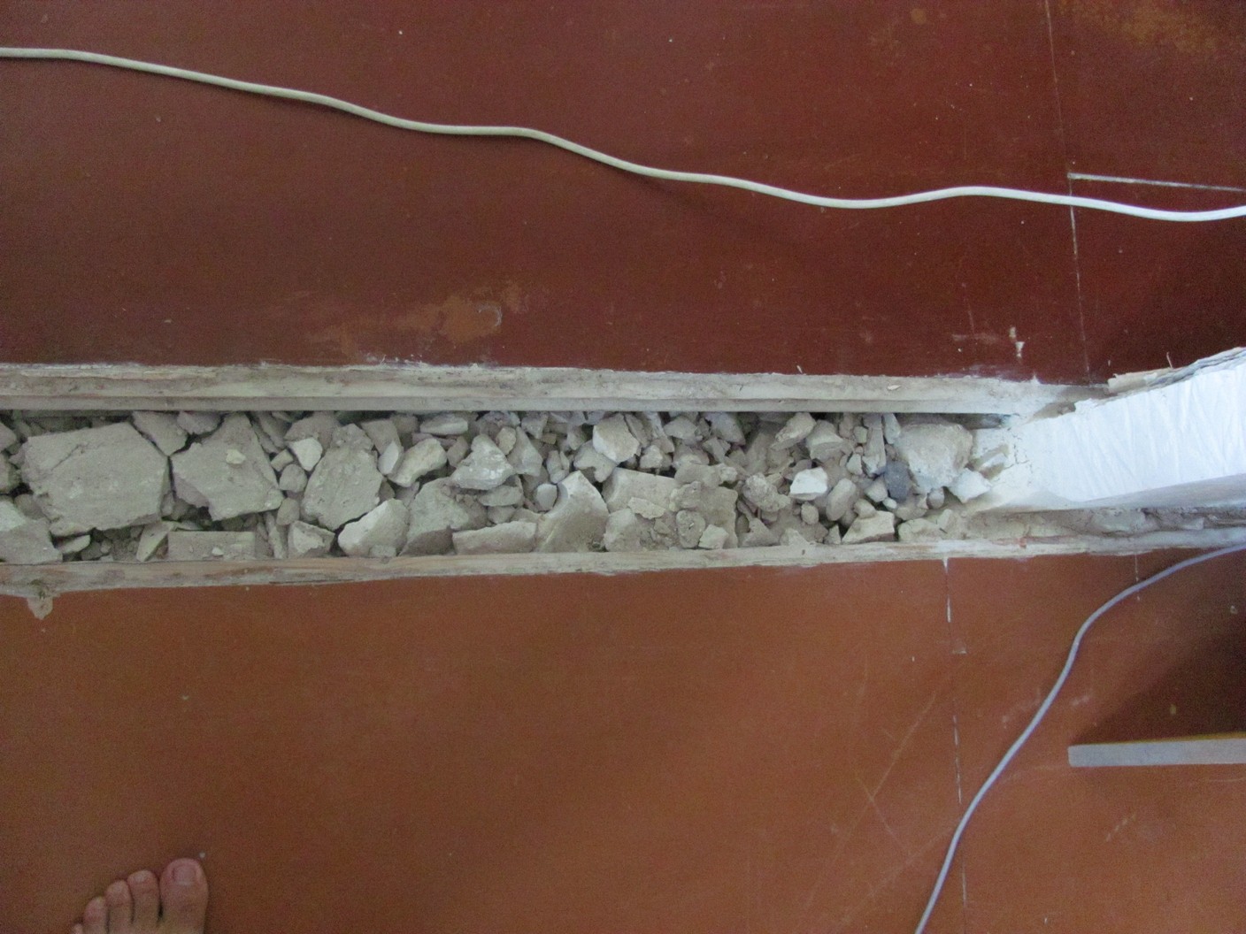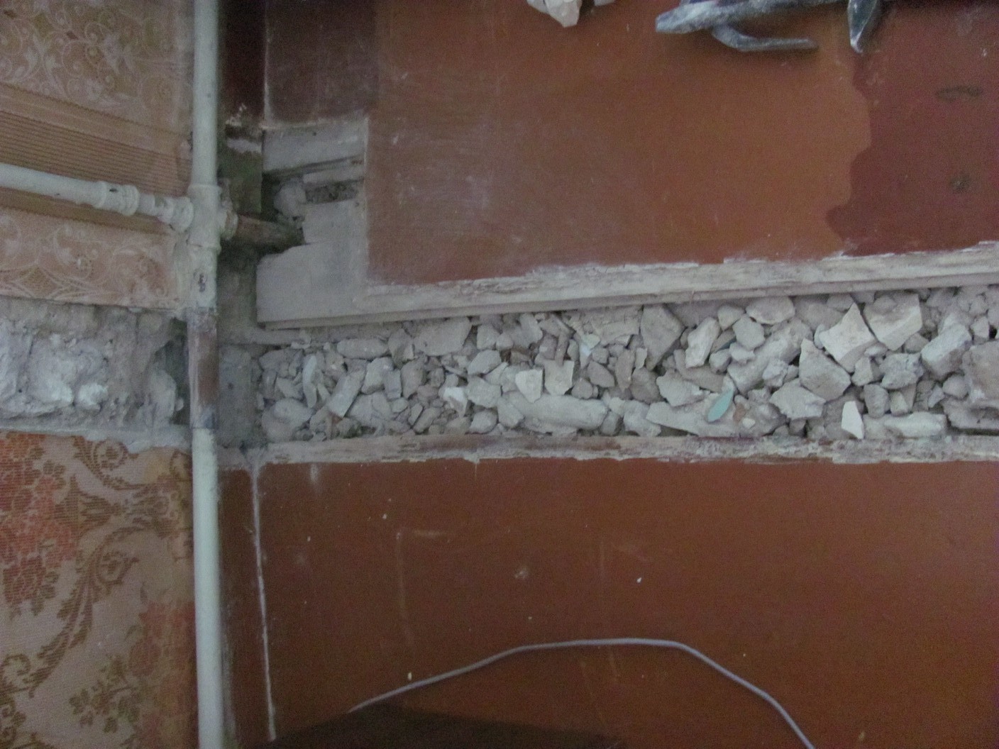 Делаю перепланировку в хрущевке, демонтировал гипсовую перегородку между кухней и комнатой и столкнулся с такой проблемой: после демонтажа получилась широкая "щель" между полом в кухне и полом в комнате, полы деревянные, уложены на строительный мусор. Вопрос собственно в том, как заделать данную "щель" чтоб пол казался однородным и в будущем не подвергался разрушению.