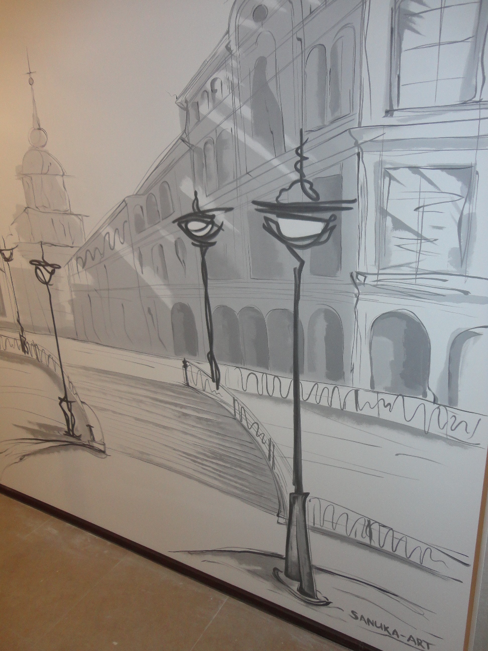Были сняты фотообои (клиент остался не доволен эфектом!) и на их место заказана роспись. Вот что получилось!