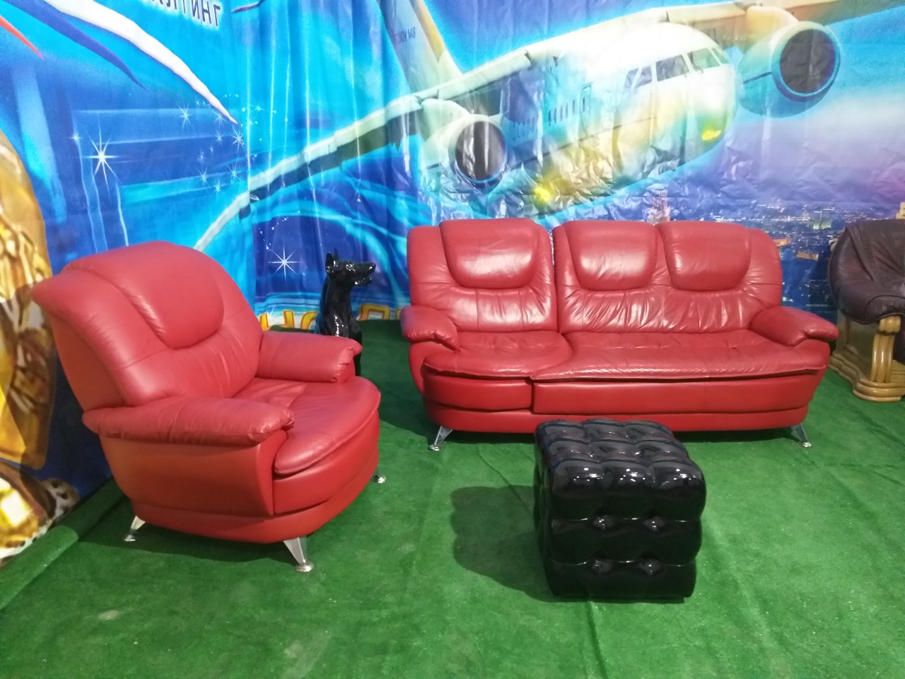 15. Лот 406. Кожаный диван трехместный, двухместный и кресло красного цвета. Натуральная кожа в отличном состоянии. Диваны не раскладываются. Длина трехместного 2.1 м, длина двухместного 1.7 м .