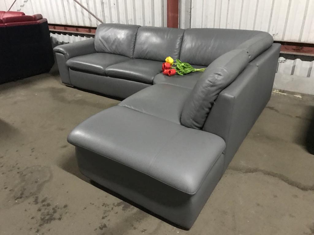 Лот 28. Новый кожаный угловой раскладной диван серого цвета с большой нишей для белья. Диван в использовании не был ! Механизм раскладывания дивана "дельфин ". Цвет по