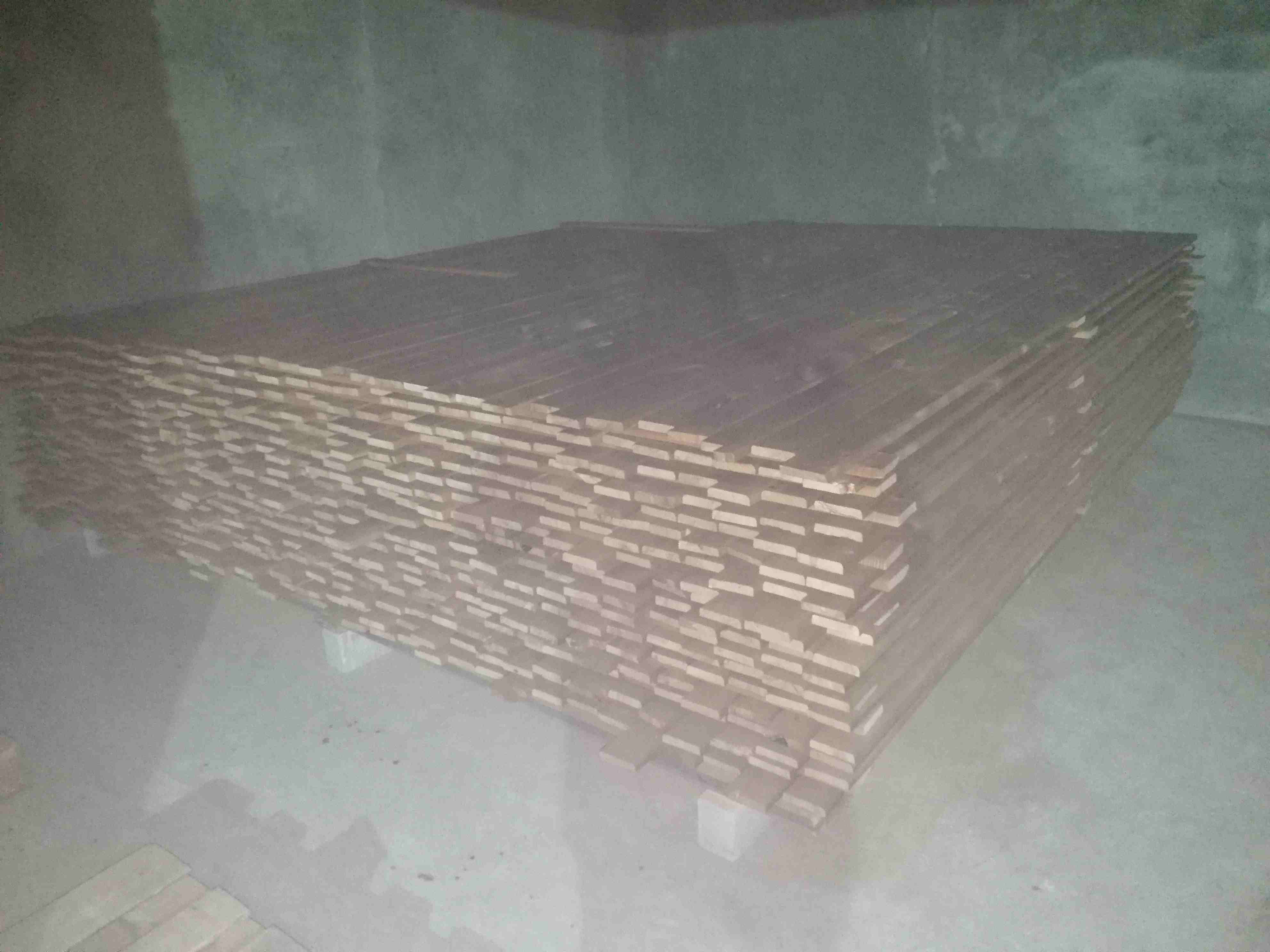 Подготовили "немного" досок на подшиву. Как и первую партию, красим в подвале. Температуру воздуха поддерживаем тепловентилятором на 3квт. Краску распыляют пульвом и сразу растирают кистью. Взвешенную в воздухе краску протягивает через тепловент, она там оседает на тенне, и затем вылетает оттуда в виде искор в сторону сохнущей палеты досок - выглядело страшновато... На фото палета готовых к употреблению досок пошивы. Через пару недель пойдут по своему прямому назначению.
