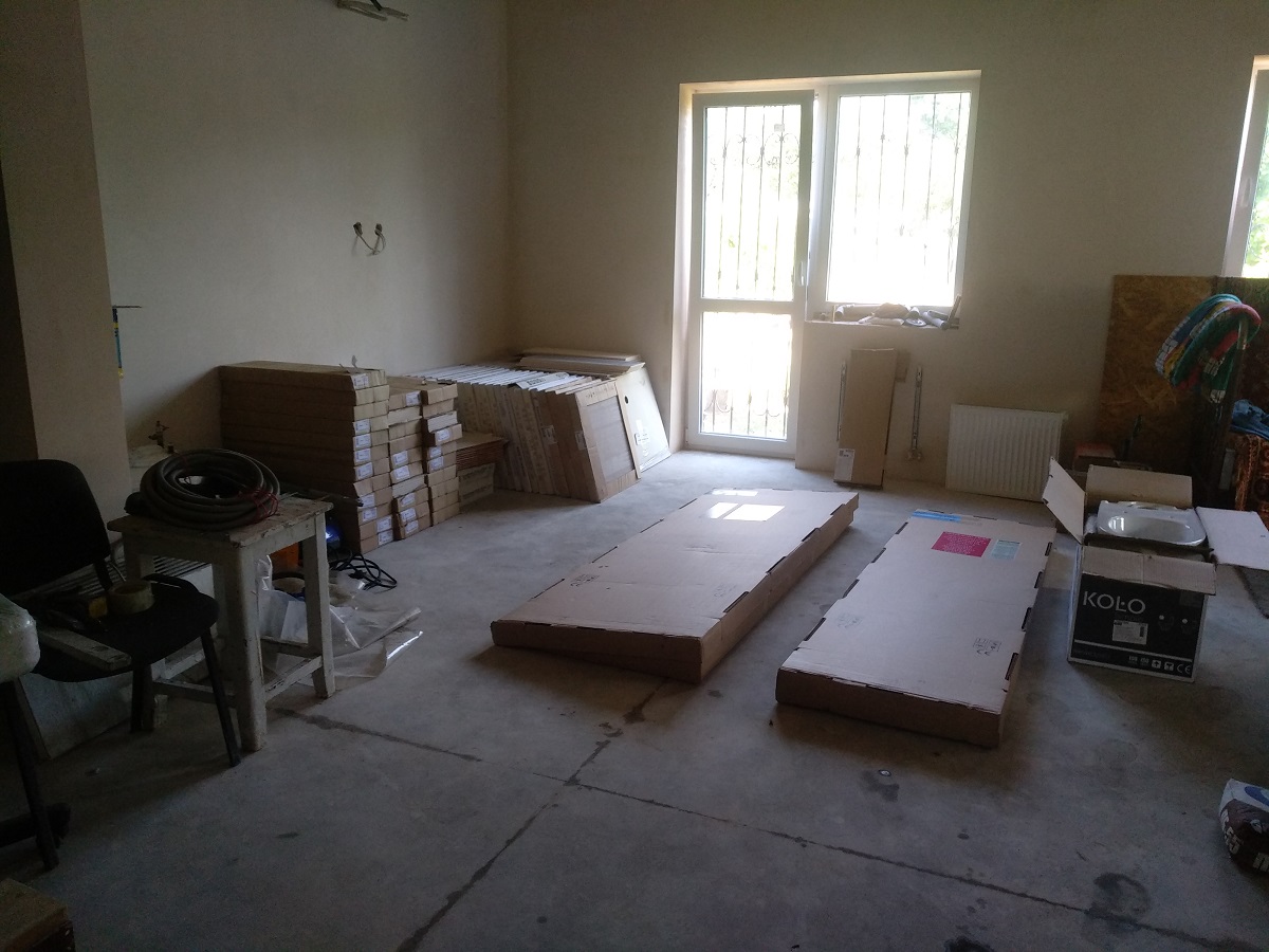 AlexLixlet Опубліковано: 28 вересня 2018 Автор Поділитись Опубліковано: 28 вересня 2018 Все трубы проложены, канализация готова, 1-ый этаж-эппс, отражающий экран, сетка, тёплый пол раскатан. Делаем стяжки. 1-ый этаж - 65м2, 2-ой - 55м2. Итого: 120. Нашел за вменяемы деньги бригаду, 248грн\м2 с их всеми материалами (песок, цемент, фибра, пластификатор). За полтора дня 2 человека затянули полусухую стяжку, затерли вертолетом. На 1-ом этаже стяжка 10см, 2-ой этаж в среднем 7см. Через 3 недели зашли штукатуры. Вот это мне попались профи :good: Все углы под 90 градусов. Большая благодарность Диме и его бригаде. Работа 100грн\м2, по материалам-72грн\м2. Объём стен-371м2. Под кафель цементная Baumit MPI 25, под обои KNAUF МП-75. Месяц ждем высыхания) Посилання на коментар Поділитися на інших сайтах More sharing options...