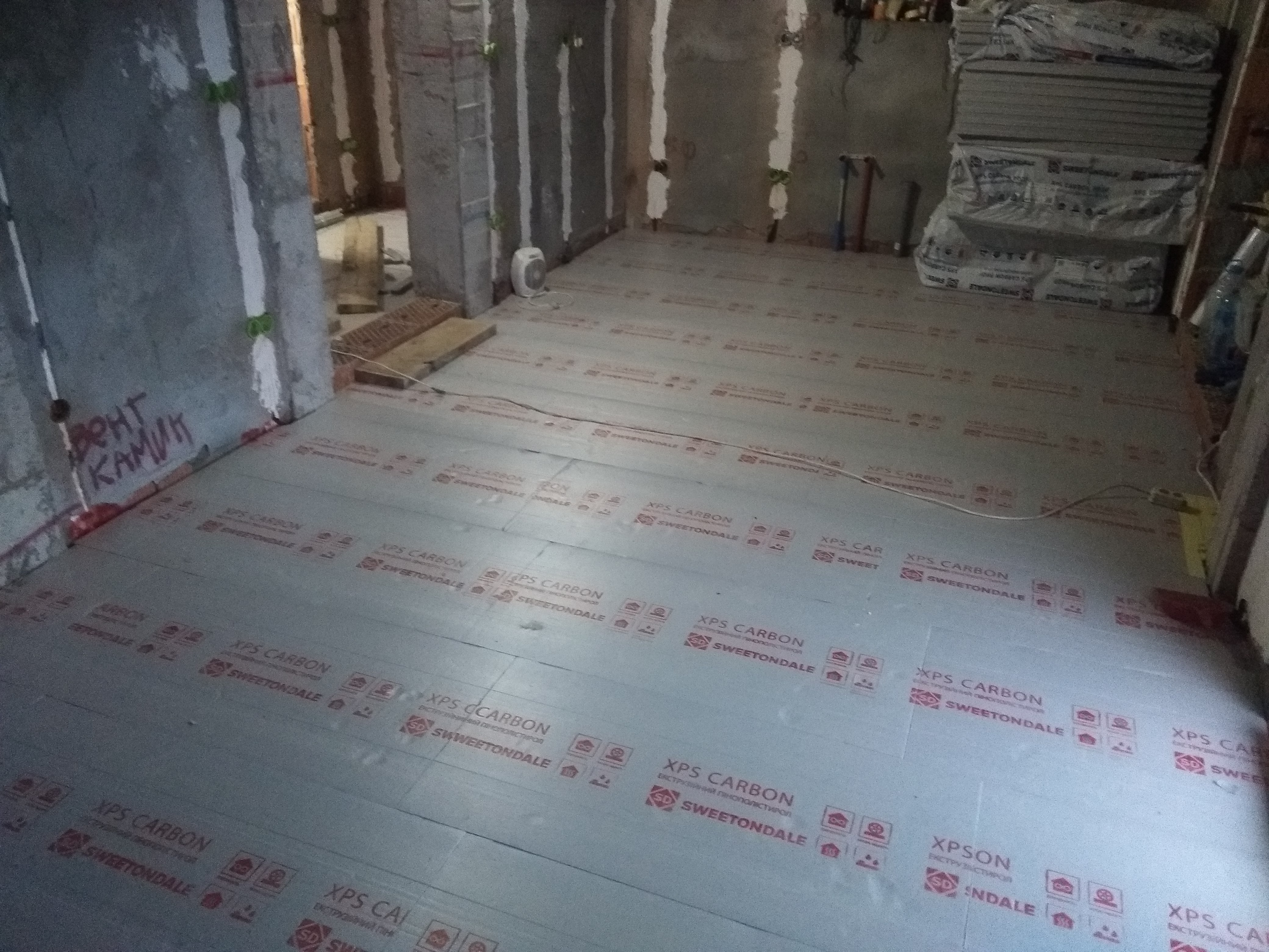 Счастливый Обладатель Опубліковано: 16 квітня 2021 Автор Поділитись Опубліковано: 16 квітня 2021 Всем доброго времени суток! Ура! Наконец-то инженерка!!! Ох и долго же к этому иду... Пришла пора делать полы по грунту, а то уже вид далекого потолка и переступания через пороги порядком надоели, плюс пыль с песка... Закупил 7.2 м.куб ХПСа двумя ходками 2.6м прицепом, это на 34м.кв, т.е 20см утеплителя. 20ти сантиметровых панелек не нашел(мож, плохо искал) , ну это оказалось и к лучшему. Сначала, перетащил хлам на второй этаж и освободил пространство. Пролил снова водой и прошел виброногой( нудная работа, надо было виброплитой, кста, нога свободно прыгает в багажник пыжика), затем подсыпая песок вприямки и стесывая правилом наплывы уложил первый ряд 5см экструзии. Т.к. это базовый слой, задающий будущие отметки чистового пола, пришлось повозиться. В среднем день на одно помещение( всего 3-хол, су и кухня-гостинная). Когда уложил, прошелся и проверил "игру " панелек, кое-где из-за кривых элементов обнаружились неплотности, заменил их др.листами или подсыпал песка. Все листы имеют замок в виде ступеньки, поэтому смысл запенивать стыки не вижу и да, плиты укладывал без паро/гидро изоляций- это ХПС. Теперь, второй 10см слой уложил по всем помещениям за день. В этом слое проходят трассы лучей отопления радиаторами,подачи и обратки теплых полов, линии горячей воды с циркуляцией и линия холодной воды. Магистраль хол.воды пущена под стенкой, чтобы не греться от горячих линий и не отбирать тепло, трубки ТП дополнительно " обуты" в слой вспененного ПЭ. На отрезок планки прикрепил полумесяц из нихромовой проволоки 1мм толщиной и закрепил шурупами. С помощью автомобилього ЗУ током до 10А прожег каналы дляотопления. Радиаторно-конвекторная система имеет лучевую компоновку( каждый элемент обеспечен своей подачей и обраткой), распределительная гребенка установлена рядом с гребенкой ТП. Линии выбрал из металопластика, прокладка петель без разрывов( радиаторы и конвекторы установлю позже) чтобы удобно опрессовку делать было. Далее будет... 6 Посилання на коментар Поділитися на інших сайтах More sharing options...