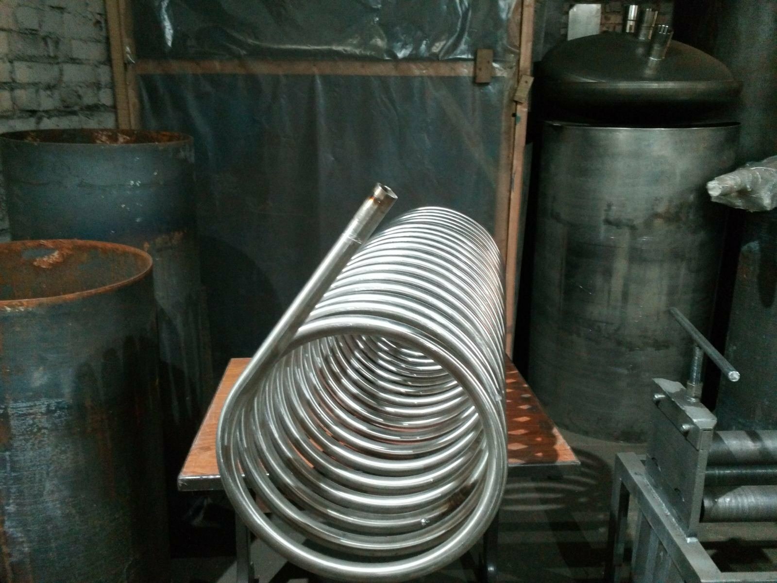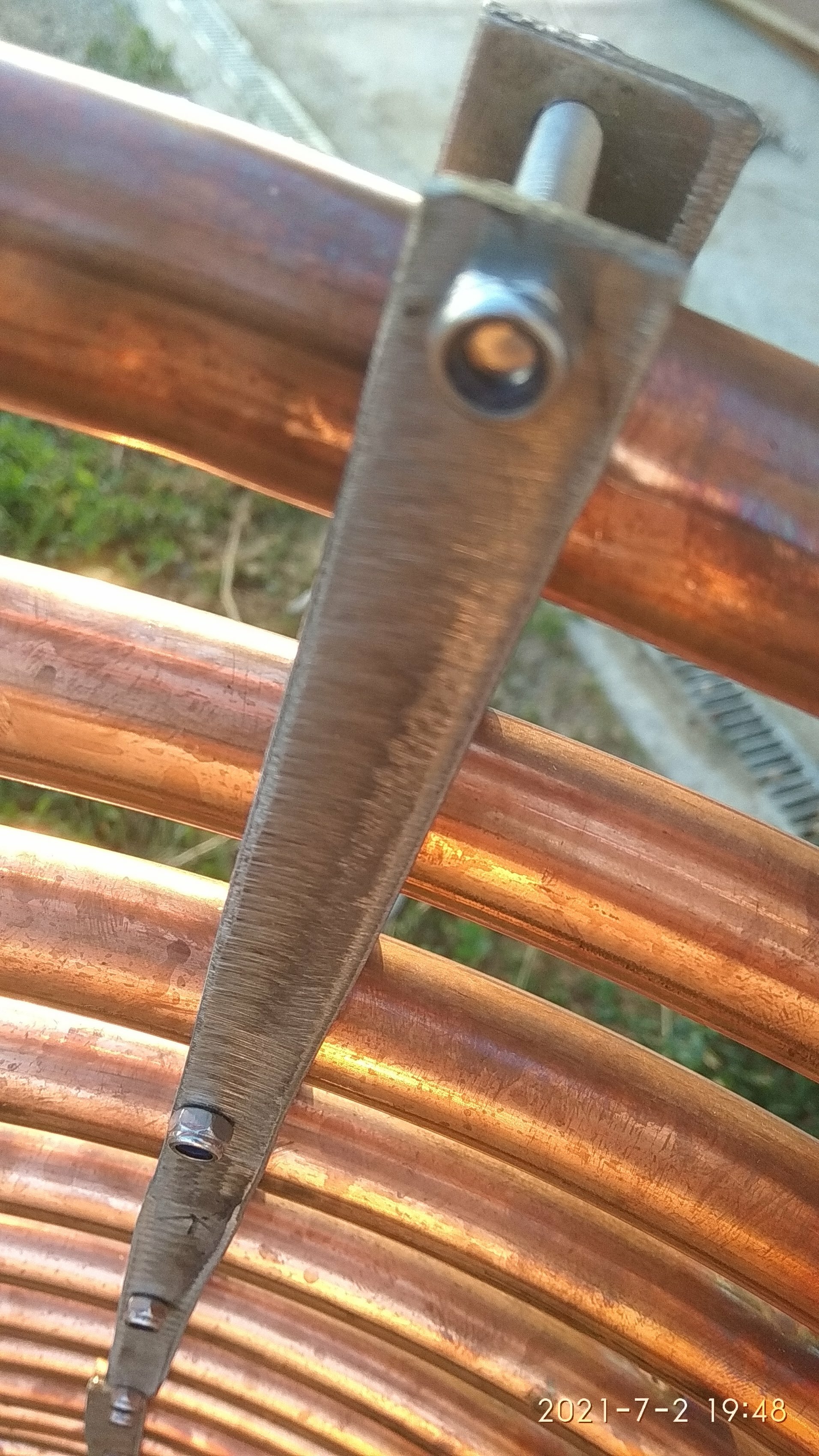 Счастливый Обладатель Опубліковано: 28 липня 2021 Автор Поділитись Опубліковано: 28 липня 2021 Блин, не могу привыкнуть к управлению вложениями... Далее прикупил 90 град колено 25мм, толщиной 1мм. изнутри 23мм. Развальцевать трубку без вальцовщика можно круглогубцами, коряво, но зато предотвратит вытекание серебрянного припоя. Не пугаться замятостей- это тестовая труба, от неудачно заломанного огрызка... На нем же и "потренировались" с припоями. Использовал Серебряный припой от Юнитора. Ушло 2!! прутика на 2 колена с проваркой на 15мм глубину.Перед этим прихватил пролусгоны к коленам аргоном. примерка Пришло понимание, что висеть на приваренных коленах змеевик не будет- вибрации при перевозках, удары при монтаже, что продольные, что осевые, обломают медь в раз! Решил усилить полосками нержа стянутый болтами и самоконтрящими гайками из нее же.... 5 Посилання на коментар Поділитися на інших сайтах More sharing options...
