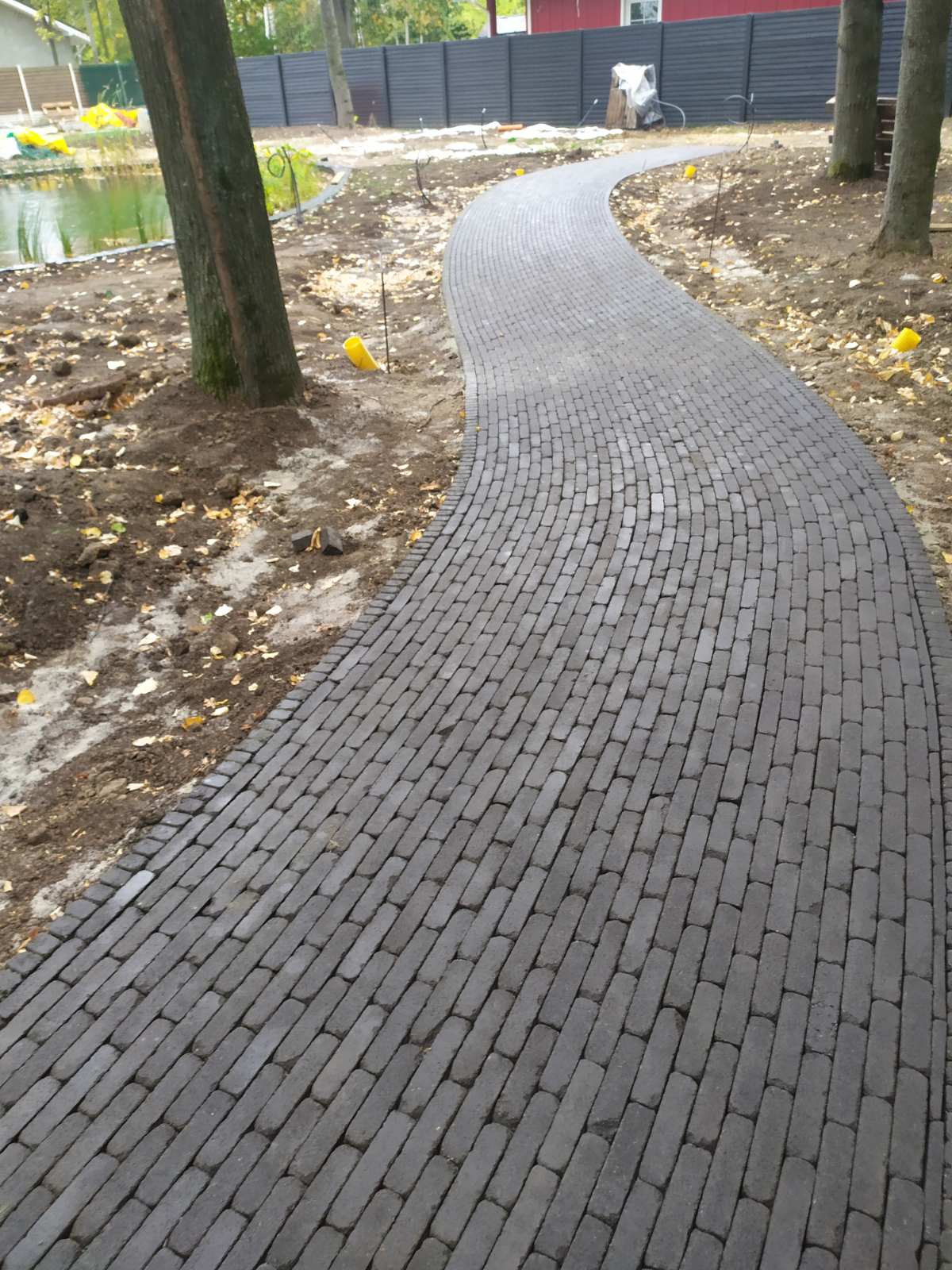 Фото последнего сделанного объекта- криволинейные дорожки на рельефном участке, без ступенек (ступени есть только у хозблока, там так задуманно).