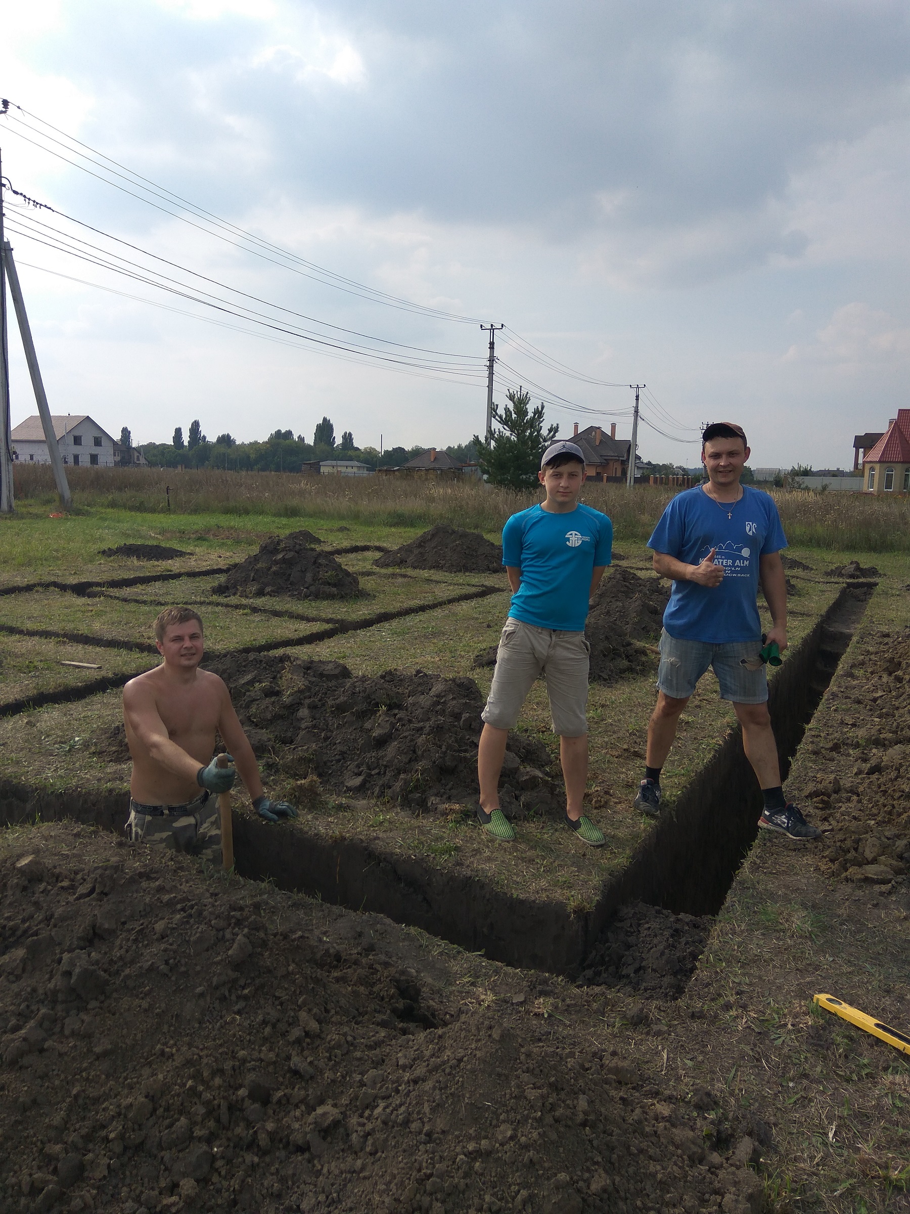 Копаємо всі дружно (друзі, батько, племінник допомагають) траншею під майбутній фундамент :)