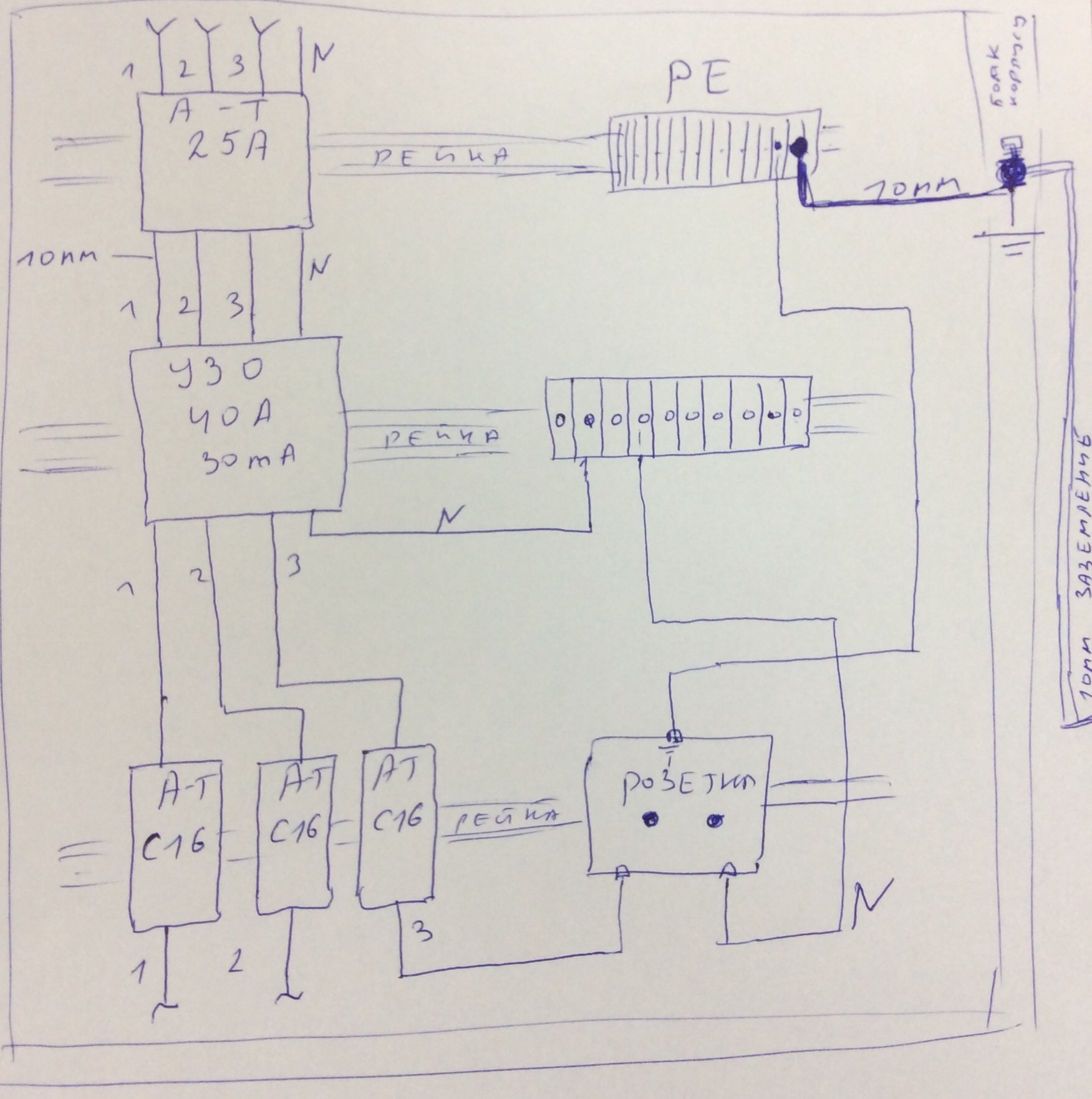 Эта схема присутствует в проекте "внутішніх електромереж", который делался как один из этапов подключения электричества на участке.