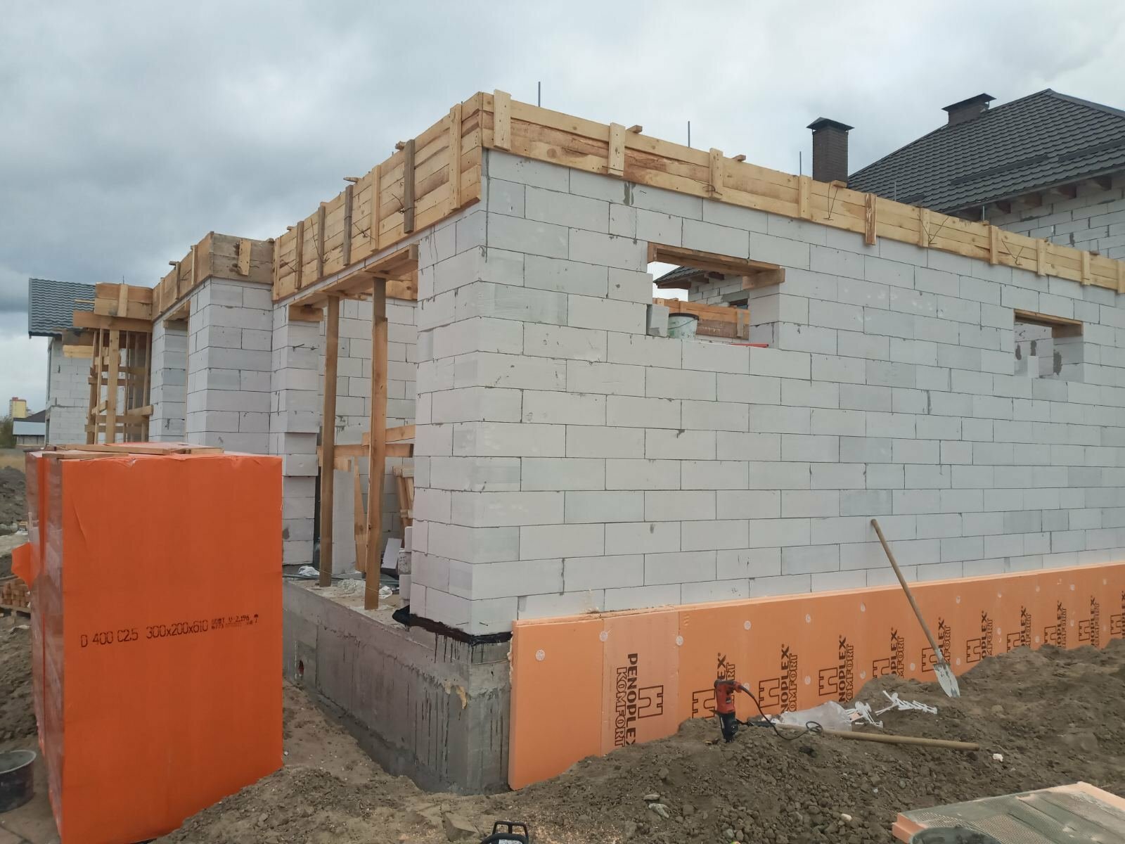motos Опубліковано: 19 жовтня 2021 Автор Поділитись Опубліковано: 19 жовтня 2021 Кладка по не многу движется и приближается к армопоясу 1го этажа. Появилась идея, пока армопояс будет сохнуть, то утеплить фундамент с помощью ЭППС -100 мм. Заказал пеоноплекс гладкий, клеить будем на клей-пену. Появилось небольшое сомнение на счет своевременности данного мероприятия, т.к. у меня утеплитель не паропроницаемый и заходит на половину первого ряда газоблока (где-то на 10 см.), то может подождать пока газоблок просохнет, или он спокойно высохнет и влага выйдет через другую сторону стены? 4 Посилання на коментар Поділитися на інших сайтах More sharing options...