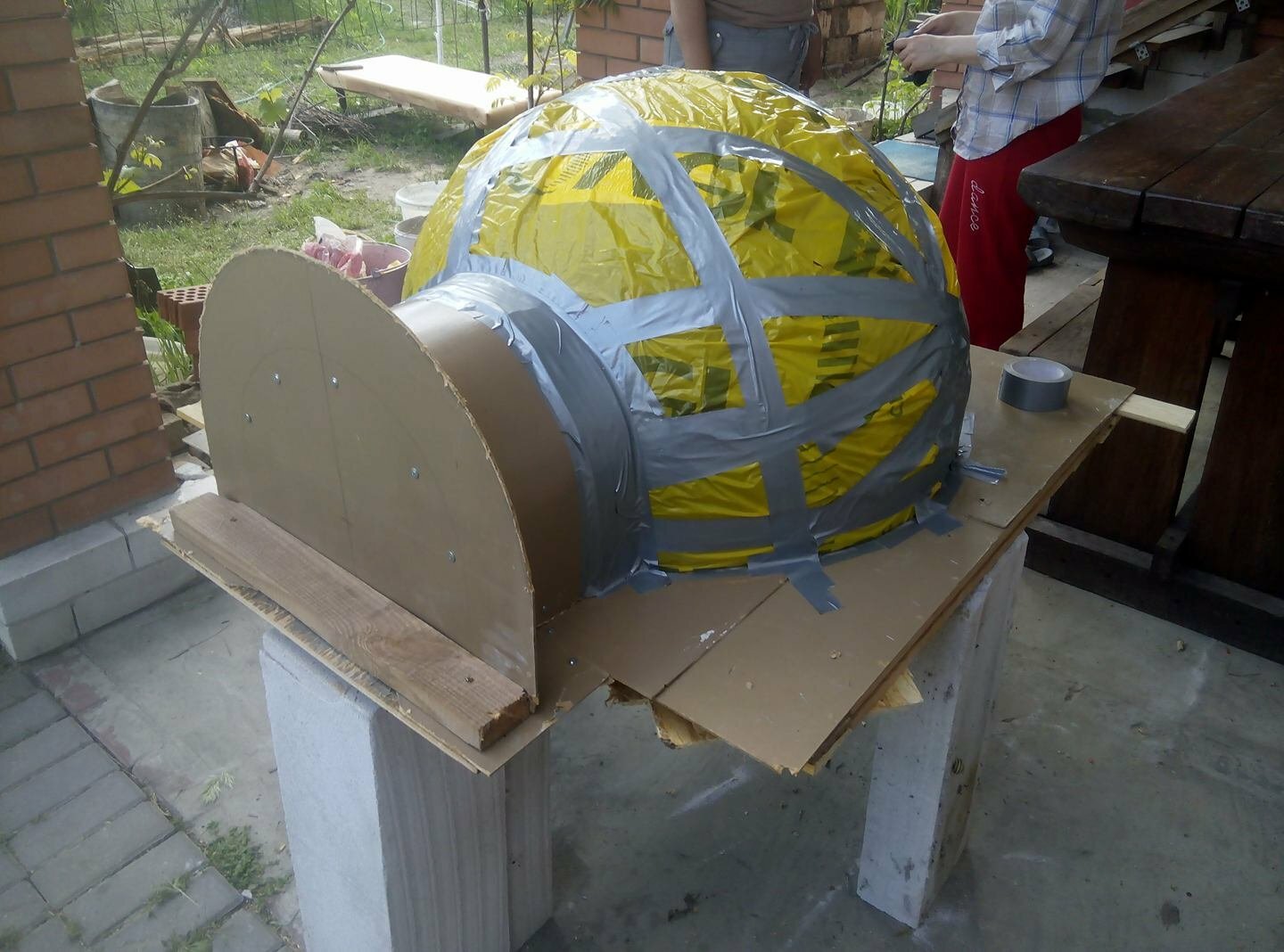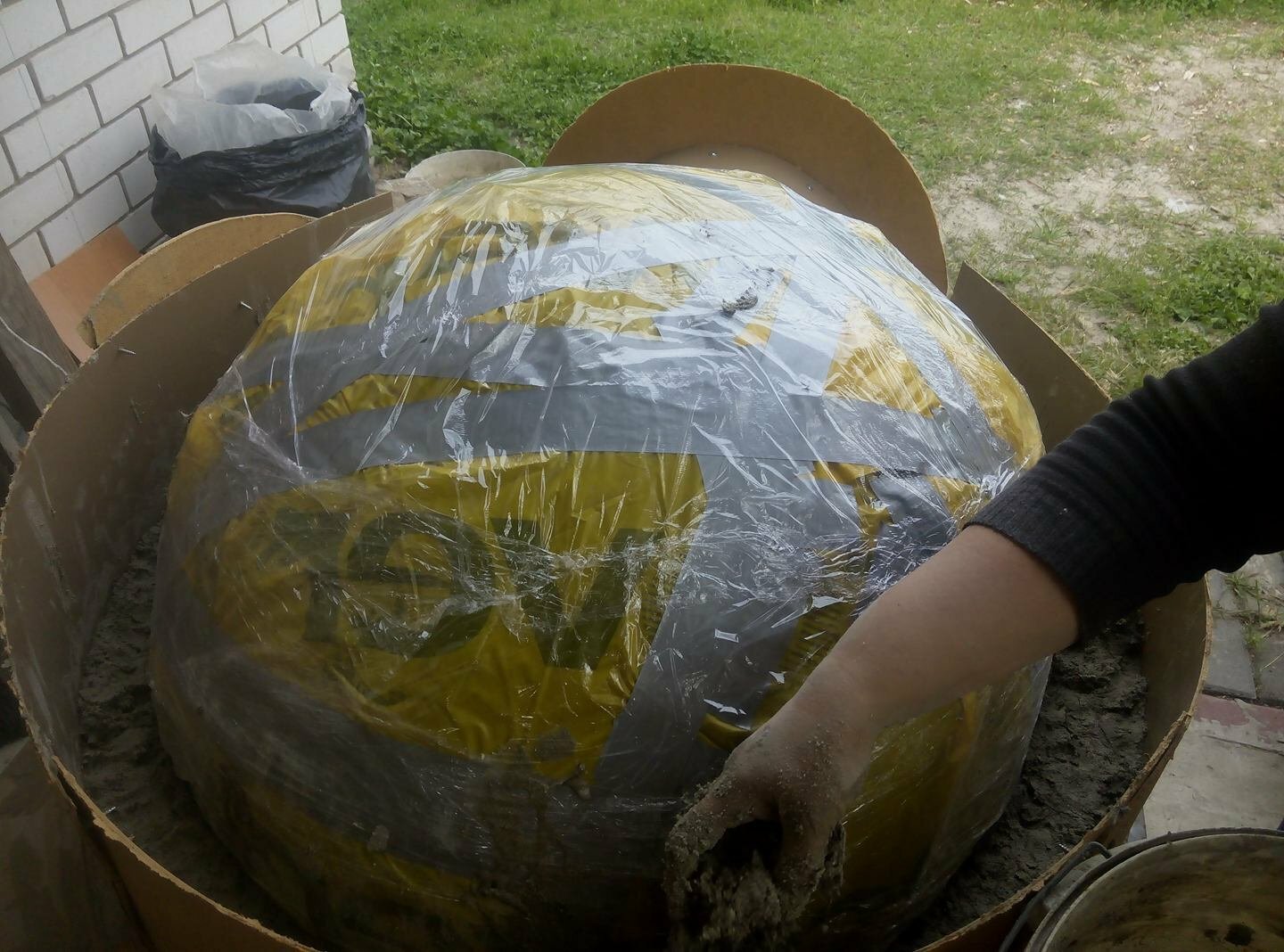 lyngyr Опубліковано: 3 листопада 2021 Автор Поділитись Опубліковано: 3 листопада 2021 Итак как я делала купол... Мяч 80 см диаметр-это основа. Цемент+ вермикулит у меня был белый как песок мелкий 3 мешка ушло. 1часть цемента+ 4 части вермикулита.(1 ведёрко+ 4 ведёрка)и ещё фибру для раствора брала(на волосы похожа), 2 пакета ушло по 1 кг. воду добавляла понемногу... но эта каша всё время сползала с мяча... сделали опалубку и запресовали в 2 этапа- низ и вход, потом сам купол. Посилання на коментар Поділитися на інших сайтах More sharing options...