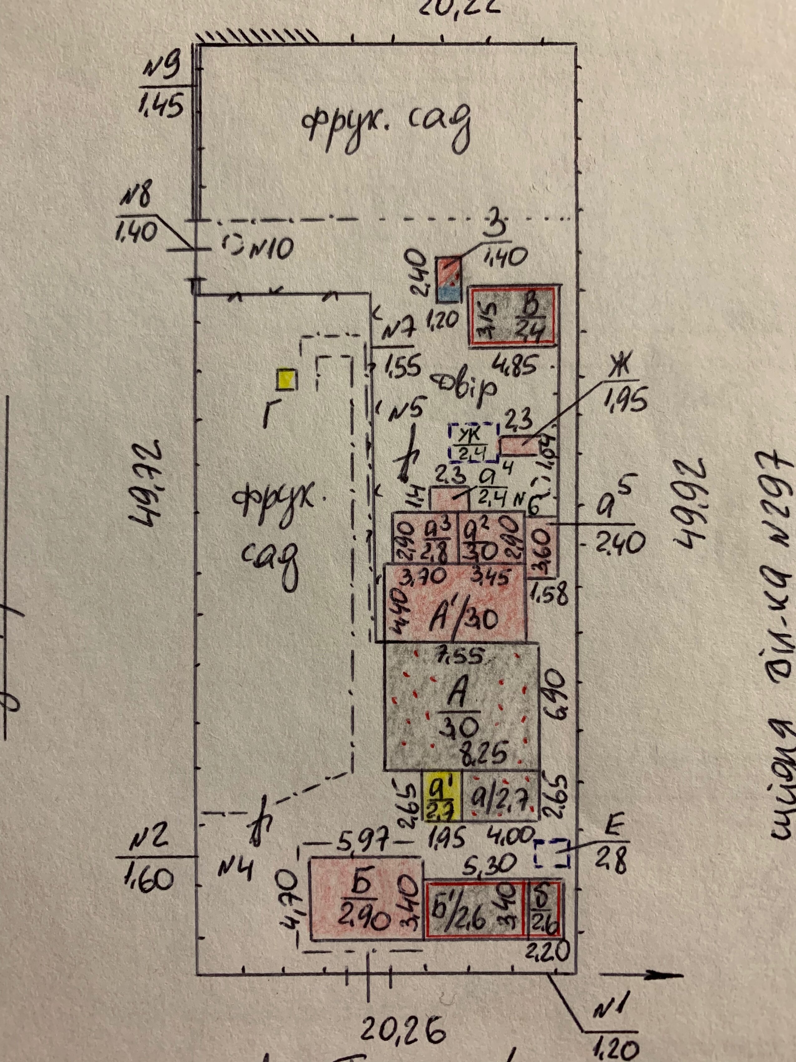 Donov Опубліковано: 2 лютого 2022 Поділитись Опубліковано: 2 лютого 2022 (змінено) Знающие люди внесите ясность) От бабушки по завещанию мне досталась 19/50 доля в совместном домовладении, 31/50 доля принадлежит другому собственнику. Тут первый вопрос, почему доли указаны от 50ти? Потому что на участке есть еще отдельно стоящий дом? Если по закону раздел земли происходит пропорционально долям лиц в праве собственности жилого дома, то получается из 10 соток участка 5 на один дом и 5 на другой в котором у меня есть 19/50 доли, т.е. мне достаётся всего 1,9 сотки? Участок на данный момент не приватизирован, но земля поделена забором (забор №7 на плане в тех паспорте) и в моем распоряжении около 4,5 сотки, т.е. больше чем должно быть пропорционально доле. Дед больше 30ти лет назад палкой провел, сказал "тут будем ставить забор" и особо ничего не делили, всех все устроило. Могу ли я в дальнейшем, именно 4,5 сотки приватизировать? Что если соседи по доле будут против? Еще заметил, что 19/50 часть не охватывает всех построек которые были в собственности бабушки. Допустим, что придет инженер с БТИ и он не сможет записать в 19/50 все, что было бабушкино и на что я претендую, как тогда быть? Для понимания прикреплю план в тех паспорте А-дом моего прадеда; Б-дом племянника моего деда; А1-дом деда и бабушки, те самые 19/50 доли с отдельным входом, коммуникациями (фактически самостоятельный жилой дом, но прилеплен к другому дому и по документам оформлен как "жилова прибудова") который я хочу выделить в отдельную инвентаризационную единицу, присвоить отдельный адрес, ну и 4,5 сотки земли приватизировать бы Змінено 2 лютого 2022 користувачем Donov Посилання на коментар Поділитися на інших сайтах More sharing options...