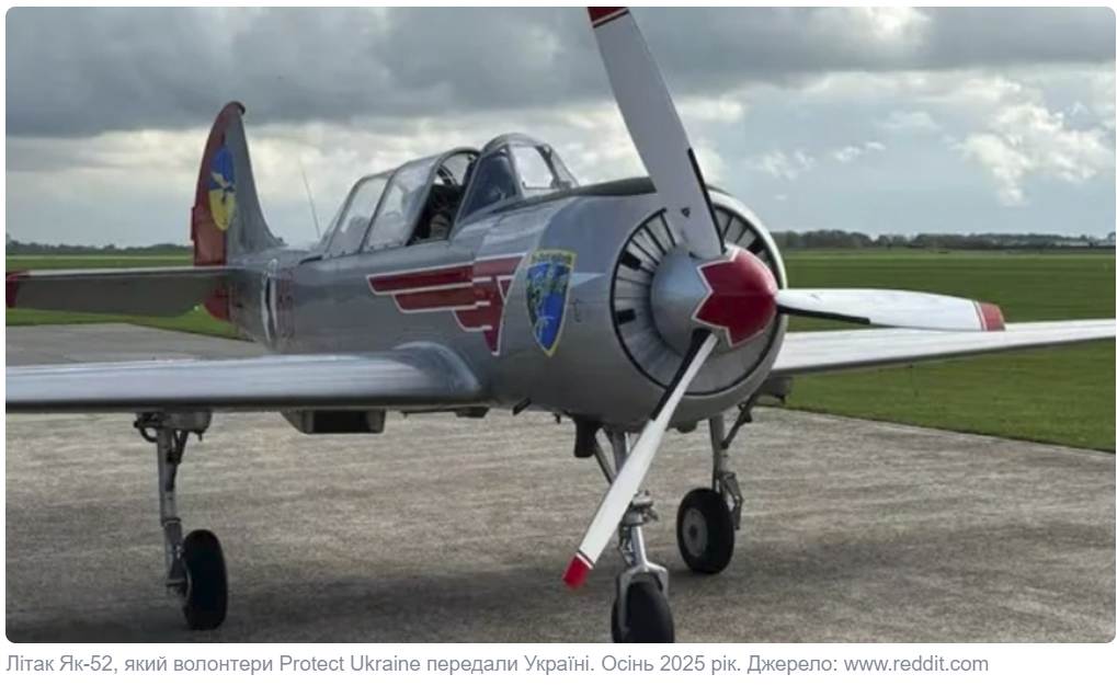 7351 Опубліковано: 51 хвилин тому Поділитись Опубліковано: 51 хвилин тому Нідерландські волонтери передали Україні Як-52 для боротьби з дронами. За даними нідерландського видання Scramble, літак доставили до України наприкінці жовтня. Фонд Protect Ukraine придбав Як-52 у Великій Британії після звернення українського авіаційного підрозділу, який спеціалізується на боротьбі з безпілотниками. Як-52 використовують для перехоплення повільніших дронів, таких як моделі Shahed. Переданий волонтерами літак Як-52 присвятили загиблому льотчику Костянтину Оборіну “Камікадзе”, який збивав російські “Шахеди” на півдні України. Як-52 з Британії Раніше літак виставила на продаж британська компанія Wilco Aviation, яка провела його капітальний ремонт у 2022 році. Виготовлений у 1985 році Як-52 оснащений двигуном М14ПФ з наддувом потужністю 400 к.с. Літак зазнав значних модифікацій для покращення характеристик і зручності використання. Серед модернізацій — заміна традиційної системи запалювання автомобільною для надійного запуску, видалення важкої проводки та інверторних систем на користь сучасних легких генераторних систем. Також внесено зміни у конструкцію зливного отвору нижнього циліндра, що підвищує ефективність роботи двигуна та надійність у польотах за складних умов. Нещодавно спецпризначенці Центру спеціальних операцій «А» уразили стоянку російських літаків Як-52, які використовувалися проти українських дронів. militarnyi.com/uk/news/niderlandski-volontery-peredaly-ukrayini-yak-52-dlya-borotby-z-dronamy Посилання на коментар Поділитися на інших сайтах More sharing options...