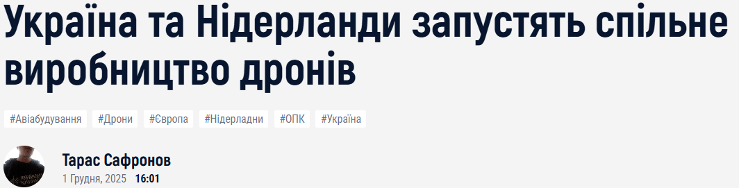 7351 Опубліковано: 41 хвилин тому Поділитись Опубліковано: 41 хвилин тому Нідерланди та Україна домовилися розгорнути спільне виробництво дронів на території обох держав. Міністр оборони Денис Шмигаль повідомив, що відповідну угоду підписано з міністром оборони Нідерландів Рубеном Брекельмансом. Документ відкриває можливість для поглиблення військово-технічної співпраці та пришвидшення виробничих процесів. Виробничі потужності розподілять між Україною та Нідерландами. Такий формат дозволяє збільшити обсяги випуску техніки та забезпечити оперативну логістику для партнерів. За домовленостями, дрони закуповуватиме нідерландська сторона, після чого вони передаватимуться українським Силам оборони. Це створює прозорий механізм підтримки та гарантує стабільні поставки. militarnyi.com/uk/news/ukrayina-ta-niderlandy-zapustyat-spilne-vyrobnytstvo-droniv/ Посилання на коментар Поділитися на інших сайтах More sharing options...