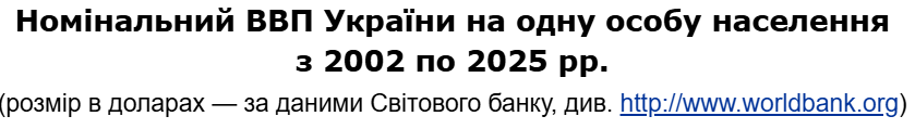 7351 Опубліковано: 9 годин тому Поділитись Опубліковано: 9 годин тому 24 хвилини тому, karbo сказав: Не задовбуй)) там ввели мінімальну зарплату чисто адміністративним методом, і хто офіційно працював змушений декларувати ці суми. Але в тіні зовсім інша, і ще мільйони безробітних без жодного доходу Рахувати треба середній дохід на одну людину і він жебрацький Пенсія 60 доларів Ось всі ваші здобутки А зараз ріст за рахунок дефіциту робочої сили, зростання воєнних замовлень та мільярдних вливань від заходу Не здивував -- одне бла-бла без жодних викладок -- працюй далі... 2013 -- 4129,9 дол. США; 2014 -- 3054,9 дол. США; 2015 -- 2094,5 дол. США; 2016 -- 2158,5 дол. США; 2017 -- 2604,3 дол. США; 2018 -- 3059,1 дол. США; 2019 -- 3619,9 дол. США; 2020 -- 3709,8 дол. США; 2021 -- 4775,9 дол. США; 2022 -- 4199,7 дол. США; 2023 -- 5139,6 дол. США; 2024 -- 5389,5 дол. США. index.minfin.com.ua/ua/economy/gdp/ Посилання на коментар Поділитися на інших сайтах More sharing options...