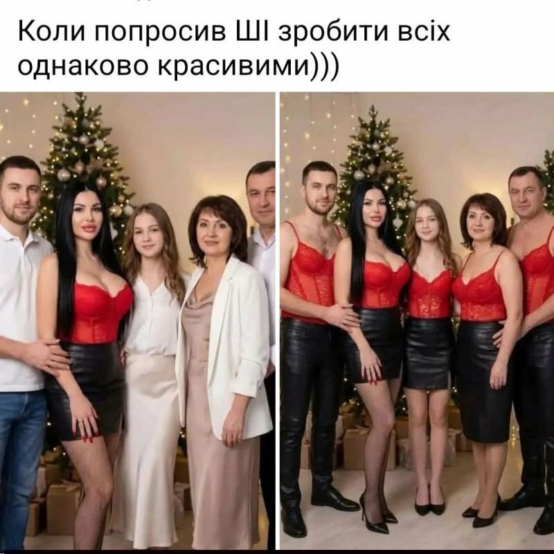 vadimv Опубліковано: В середу в 10:28 Поділитись Опубліковано: В середу в 10:28 11 хвилин тому, US7IGN сказав: Треба було ще губи-вареники на всіх розкатати ) Недопрацював ШІ )) Посилання на коментар Поділитися на інших сайтах More sharing options...