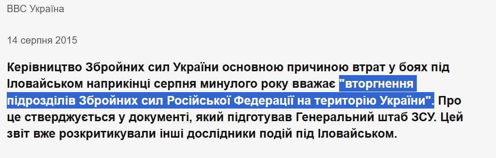7351 Опубліковано: 1 година тому Поділитись Опубліковано: 1 година тому 1 годину тому, ks6 сказав: Ну, если я, в 2015 садился в Киеве на поезд Львов-Москва и въезжал в рашку по внутреннему паспорту, то это что? Война? www.bbc.com/ukrainian/politics/2015/08/150814_ilovaysk_hq_general_sx armyinform.com.ua/2021/02/18/analiz-generalnogo-shtabu-zsu-shhodo-bojovyh-dij-na-debalczevskomu-placzdarmi-z-27-sichnya-do-18-lyutogo-2015-roku/ Для не зовсім тупого громадянина будь якої країни -- це війна, або, юридично, збройна агресія однієї держави проти іншої. А заперечення збройної агресії Російської Федерації проти України, (тобто війни) розпочатої у 2014 році, у тому числі шляхом представлення збройної агресії Російської Федерації проти України як внутрішнього громадянського конфлікту в Україні є кримінальним злочином, який має конкретну статтю в карному кодексі України. Посилання на коментар Поділитися на інших сайтах More sharing options...