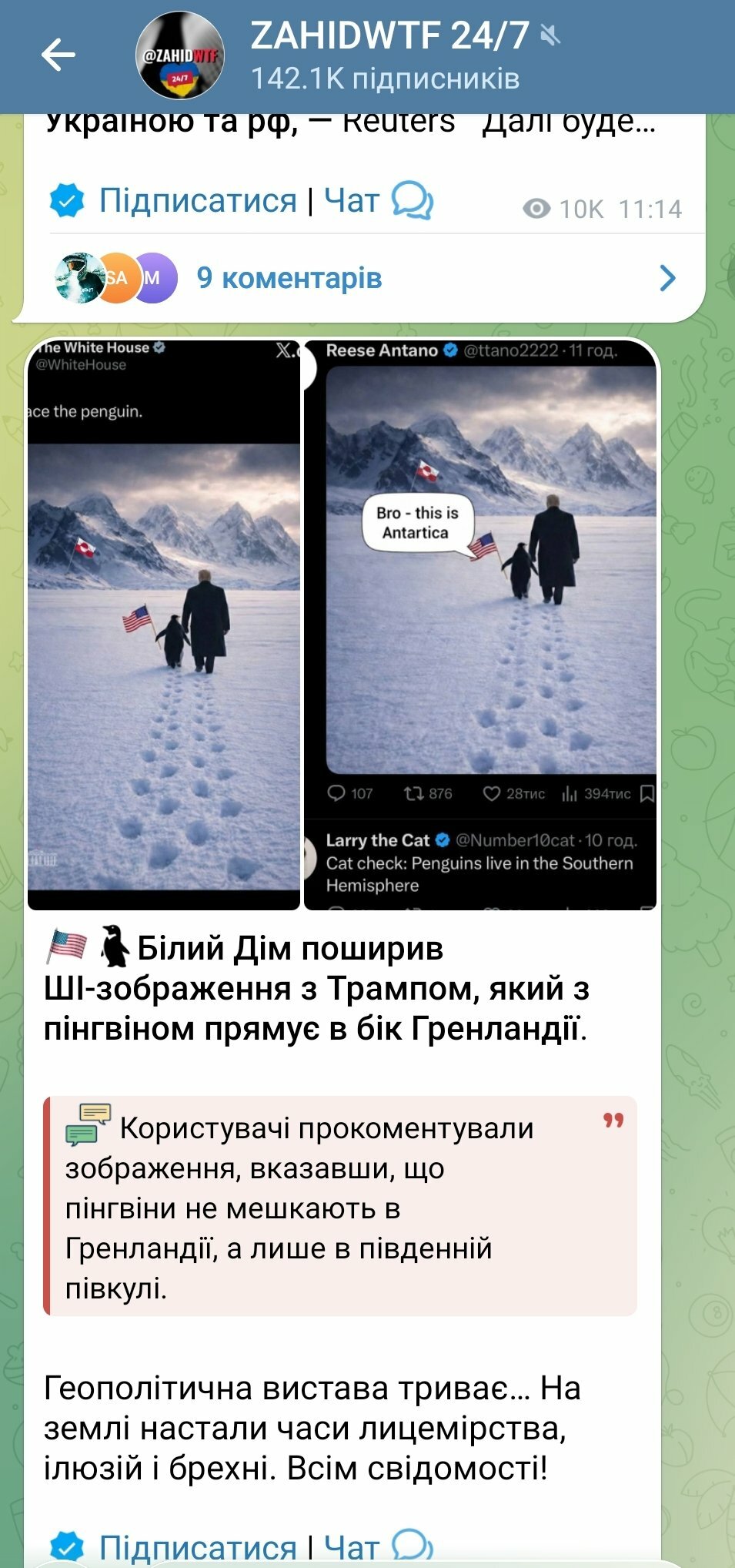 sergio Опубліковано: 1 година тому Поділитись Опубліковано: 1 година тому 9 минут назад, Dr.Yura сказал: Тільки замісць Antartica мали написати America. 😏 Посилання на коментар Поділитися на інших сайтах More sharing options...