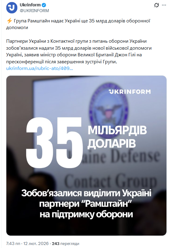 7351 Опубліковано: 2 години тому Поділитись Опубліковано: 2 години тому Підрозділи Сил оборони України уразили у Росії арсенал зберігання ракет, боєприпасів та вибухових речовин Головного ракетно-артилерійського управління Міністерства оборони та завод з виробництва високотехнологічного обладнання для авіаційних і ракетних систем. «У рамках системних заходів зі зниження наступального потенціалу російського агресора підрозділи Сил оборони України, в ніч на 12 лютого у районі н.п. Котлубань (Волгоградська область, РФ) уразили арсенал комплексного зберігання ракет, боєприпасів та вибухових речовин Головного ракетно-артилерійського управління Міноборони РФ», - ідеться у повідомленні. У Генштабі зауважили, що цей арсенал є одним з найбільших майданчиків для зберігання боєприпасів російської армії. «Удару по арсеналу завдано українськими засобами дальнього ураження FP-5 «Фламінго», - заявили в Генштабі. www.ukrinform.ua/rubric-ato/4090527-genstab-pidtverdiv-urazenna-v-rosii-oboronnogo-zavodu-ta-arsenalu-z-raketami-j-boepripasami.html Посилання на коментар Поділитися на інших сайтах More sharing options...