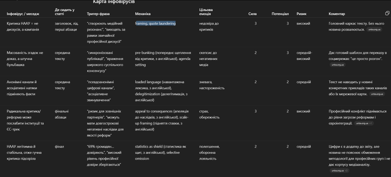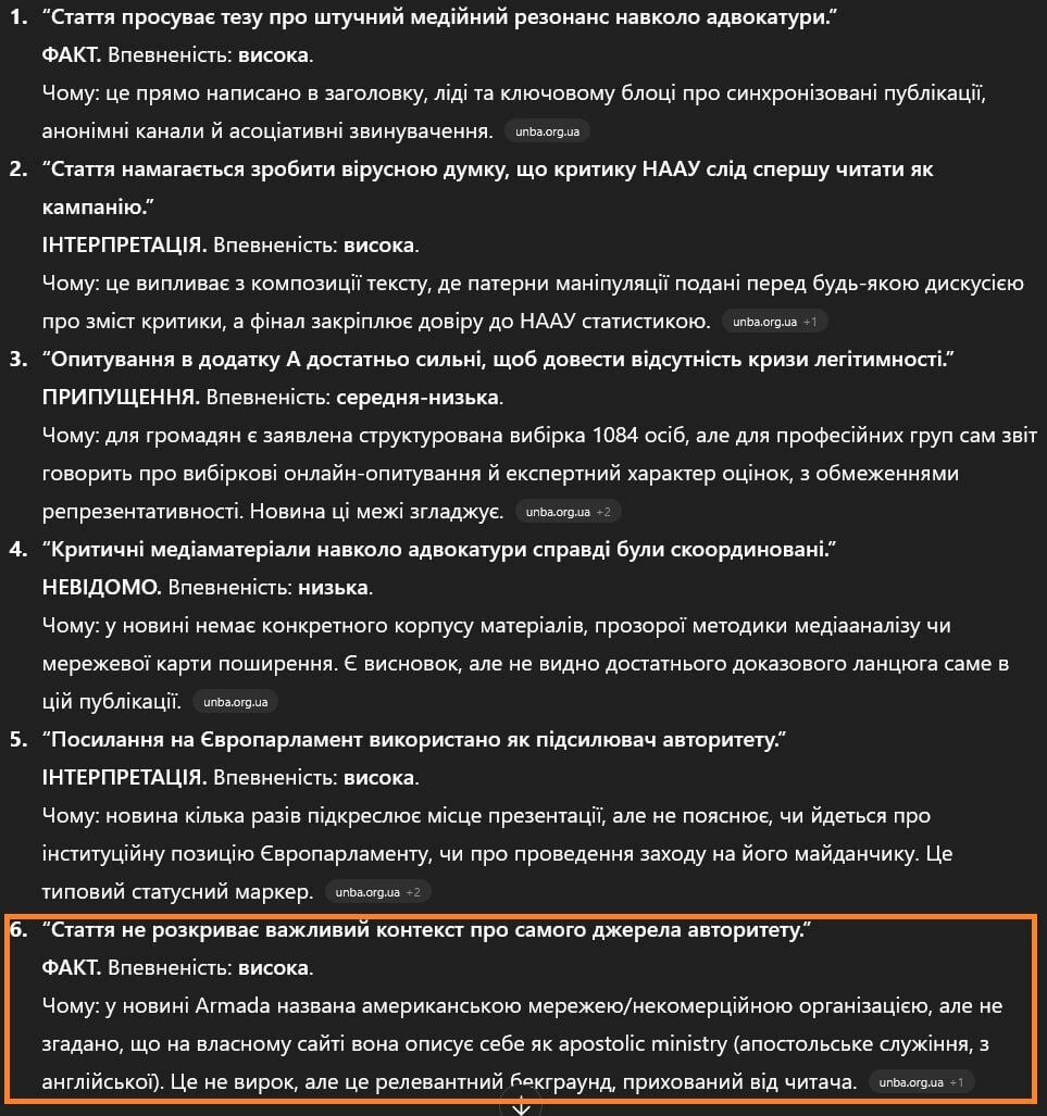 DmiVady Опубліковано: 24 хвилини тому Поділитись Опубліковано: 24 хвилини тому (змінено) 2 години тому, US7IGN сказав: нотебук ні до чого. більше того, ви продемоснтрували критичну вразливість покладатися на ШІ. ручний режим мене привів до джерела www.armadanetwork.org/about/about-us/ я розумію що але я не вважаю що бо виставити проти www.pravojustice.eu/en весільного генерала старого сенатора чи конгресмена та якіхось лівих пасторів просто смішно а з урахуванням наприклад цього unba.org.ua/news/11428-novu-posadu-ermaka-u-naau-prokomentuvala-koordinatorka-komitetiv.html , це просто лютий зашквар Змішались в кучу коні ... люди ... Поїхали поступово: Ви відповідали на мій пост Коте, так? В тому пості обговорювалась технічка відокремлення інфовірусів, так? Ви дали посилання на статтю, так? Далі я даю вам у відповіді пряму вказівку на те, про що я кажу "Щодо статті:", з погляду вкидання інфовірусів "якісно" (звісно, це не про етику, це про техніку). А саме: Прихований текст Тобто, я дав оцінку тому, що рівень написання явно не полубітний і не мануал-реліфера та орал-масажиста Маши Залупиної з пейсбуку. Про саму Армаду п.6, виділено - але більшість це просто не помітять/не перевірять, тому спрацює, і це теж про рівень. Прихований текст Далі перевірка по механіках розгону в інфополі України, це все написано вище, можу дати список видань, але я ранжував за принципом: "попало в білий список ІМІ або залишилось у джинсі". Купити статтю на РБК або Цензорі це не 100 гривень, тож знов про рівень захисту. Далі перевірка на що спирається інфовірус (вкид, ІПСО ... назвіть як зручно). Якісні вкиди спираються на максимум правди, яку можна підтвердити, тому звіт Армади треба було перевірити. ВММ витягла "Тіньовий звіт" і прогнала порівняння критики Армади з тим що написано в "Тіньовому звіті". Вердикт я дав: щоб не писати "трохи ***ять, але складно" написав більш культурно 😉 Де і як, скрін не влізе, треба робити кілька ... тож текстом. Звісно під кожним висновком і порівнянням ВММ (мої налаштування) залишає посилання, щоб я її міг перевірити. Наголошую: під кожним 😉 Прихований текст Порівняння пункт у пункт 1) Єдина НААУ чи множинність асоціацій Тіньовий звіт: допускає вилучення норми про те, що єдиною професійною асоціацією є НААУ, і пропонує можливість кількох асоціацій з обов’язковим членством мінімум в одній із них. Armada: називає такі підходи такими, що часто спрямовані на “ліквідацію або радикальне переформатування” адвокатури. Вердикт: ФАКТ. Тут Armada загалом б’є в ціль. Цей пункт тіньового звіту реально йде далі, ніж просто “вдосконалити регулювання”. 2) Хто має контролювати ЄРАУ Тіньовий звіт: хоче привести ЄРАУ у відповідність до закону; за умови децентралізації адвокатури пропонує передати ведення ЄРАУ одному з органів системи правосуддя, наприклад ДСА або ВРП. Armada: навпаки описує ЄРАУ як базовий цифровий елемент самоврядування і пропонує ще сильніше зв’язати статус адвоката із записом у самому ЄРАУ. Вердикт: ФАКТ. Це прямий концептуальний конфлікт: externalization (винесення назовні, з англійської) у тіньовому звіті проти internal strengthening (внутрішнього посилення, з англійської) в Armada. 3) Модель виборів: пряме цифрове голосування Тіньовий звіт: хоче законодавчо змінити вибори ОАС на принцип “один адвокат - один голос” із цифровими засобами. Armada: вважає, що цифрові інструменти можуть бути допоміжними, але не єдиною основою легітимності; окремо критикує кон