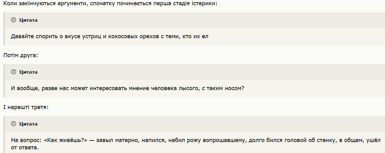 vadimv Опубліковано: 1 година тому Поділитись Опубліковано: 1 година тому 2 хвилини тому, US7IGN сказав: які гарні взаємовиключні тези. так і запишемо, в електромеханіці, робототехніці та фінансовому менеджменті мандрівник нічого не петрає а, ще й за базар не відповідає, переводячи стрілки на інших А ще коли нічого відповісти - то починає вимагати в опонента то лінкедин то фотки паспорта з візами ) 2 Посилання на коментар Поділитися на інших сайтах More sharing options...