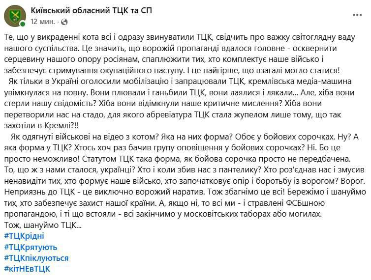 US7IGN Опубліковано: 1 година тому Поділитись Опубліковано: 1 година тому (змінено) 13 хвилин тому, Dr.Yura сказав: там є відповідь від тцк... зараз спробую сюди скинути t.me/batalionmonako/48151 Неприязнь до ТЦК — це виключно ворожий наратив. Потрібно берегти тих, хто забезпечує захист нашої країни, - у Київському обласному ТЦК заявили, що ніхто з них кота не крав і звинуватили у всьому пропаганду та то ясно. хай кота покажуть і ще одне не ясно. так ворожа пропаганда чи таке ставлення суспільства? Змінено 1 година тому користувачем US7IGN Посилання на коментар Поділитися на інших сайтах More sharing options...