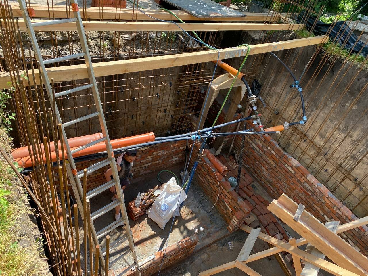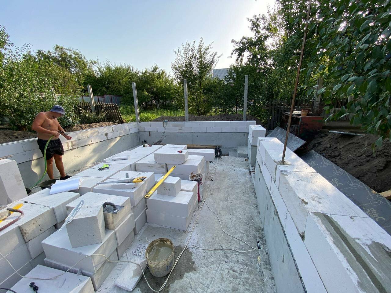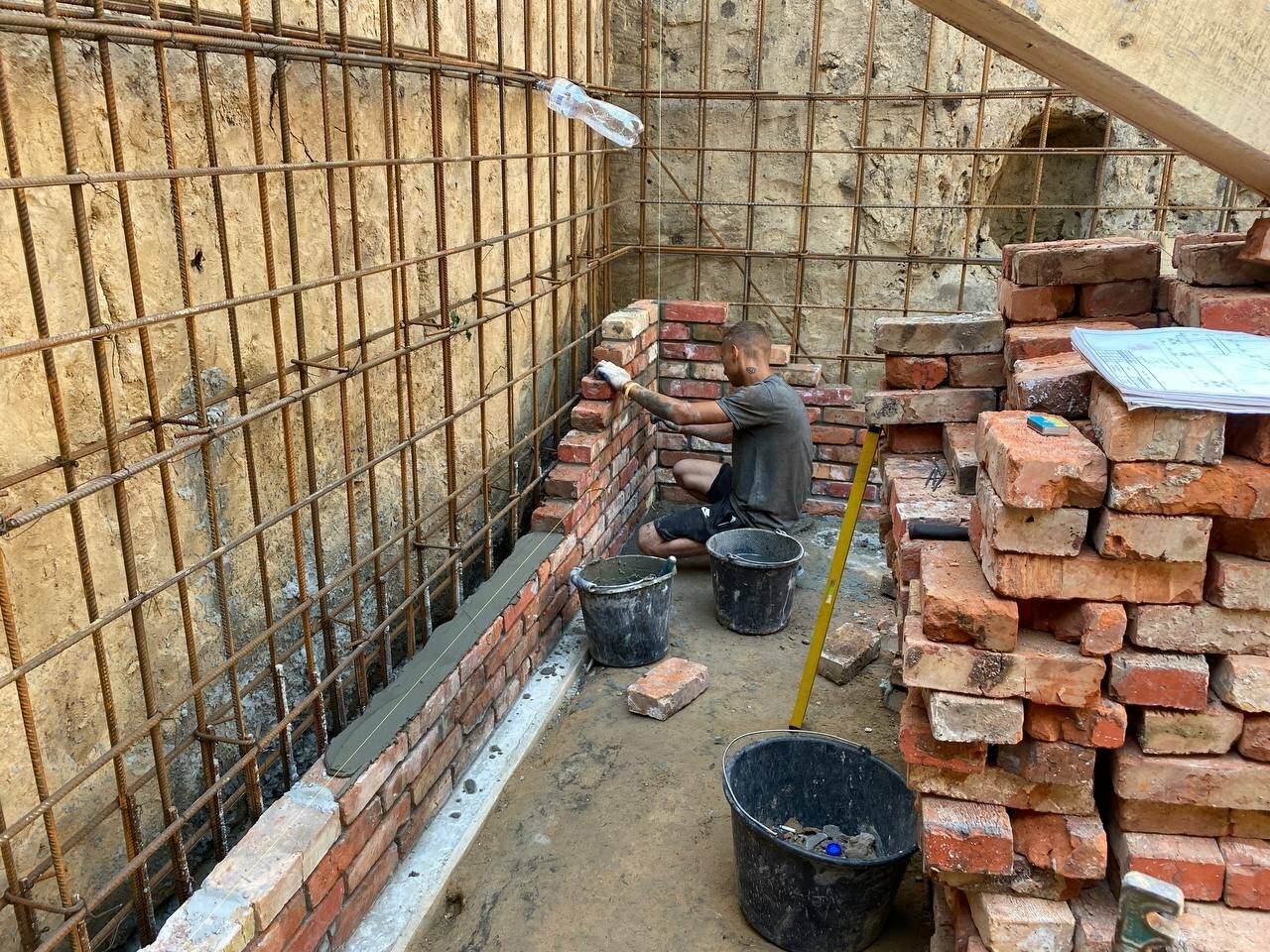 FOX.kissfm Опубліковано: 28 липня 2023 Автор Поділитись Опубліковано: 28 липня 2023 (змінено) Следующий этап - армирование, бетонирование основания, и поднятие стен. Тут не обошлось без проблем. С нанятой бригадой пришлось попрощаться, потому как с двух переделок, они так и не смогли собрать арматуру в проектное положение. Потерял три недели на поиск новой бригады, нашел. И 19 июля они продолжили строительство. Ребята молодцы, арматурщик из турции вообще виртуоз. Заармировали стены 12мм арматурой в две сетки и погнали кирпич, по ходу заливая бетон. Так же в стену заложена полоса стальная и приварена в нескольких местах к арматуре стен, перекрытия, и выведена через газоблок на крышу, там будет привера к арматуре перекрытия. В полу погреба забит классический треугольник из трех уголков 50ммх5мм обваре полосой и будет соеденятся с полосой в стене. Так же к этой полосе приварены болты, к которым будет присоеденяться электрошкаф и прочее электрооборудование. В итоге от начала армирование основания до полного завершения стен прошло 19 дней. Змінено 28 липня 2023 користувачем FOX.kissfm 11 Посилання на коментар Поділитися на інших сайтах More sharing options...