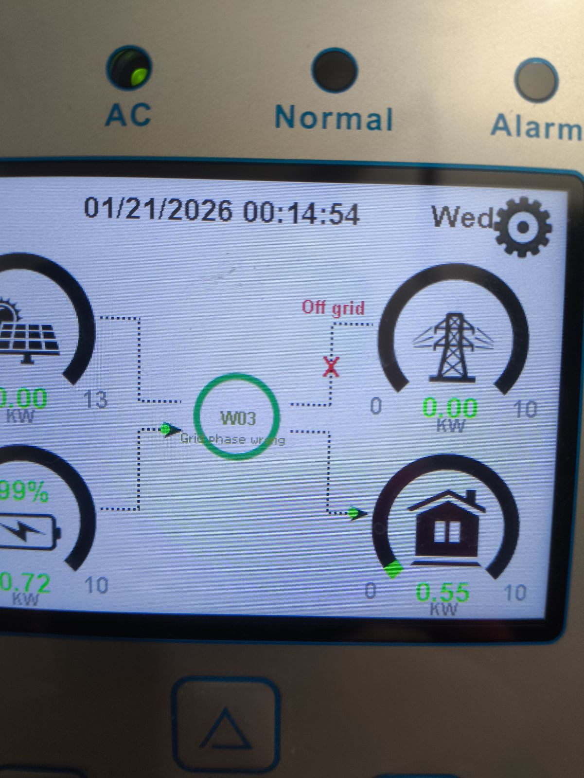 Vikctor Опубліковано: 2 години тому Поділитись Опубліковано: 2 години тому Вночі в мене тут локально відгоріло кілька дротів на трьох прольотах високовольтних опор. Не знаю чи всі дроти відгоріли, але навіть якщо так то не одразу. Інвертор миттєво відрубив грід і почав сигналити, хоча діод АС світився ще хвилин 40. Через якийсь час червоний діод помилки зник, але грід все одно не вмикався і сигнал продовжував волати аж доки мережу не вимкнули. Цікаво що автівка заживлена до інвертору й продовжувала заряджатись поки не зникла мережа. Напруга на тієї фазі була більш-менш, враховуючи обставини - 190-205В. Скільки було на інших двох не відомо, але в місцевій групі писали і про 90 і про 110. Тож може й нуль відгорів. Як би там не було лінію досі не відремонтували, але завдяки сонцю я з електрикою. Коли червоний діод згаснув на екрані з'явилася помилка, що свідчить про зміну фазіровки чи щось подібне (на фото). Я навіть перемкнув фази в налаштуваннях, але це не допомогло і я повернув все назад. Тож у мене є привід втішатись, що інвертор настільки крутий, що вчасно відпрацював і не дозволив пошкодженій мережі щось спалити, включно з собою. І є запитання - раптом хтось з цім жахливим сигналом щось вирішував. Немає можливості його вимкнути? Бо він 40 хвилин безперервно волав. З котельні нам то було майже не чутно, але все одно неприємно. 1 1 Посилання на коментар Поділитися на інших сайтах More sharing options...
