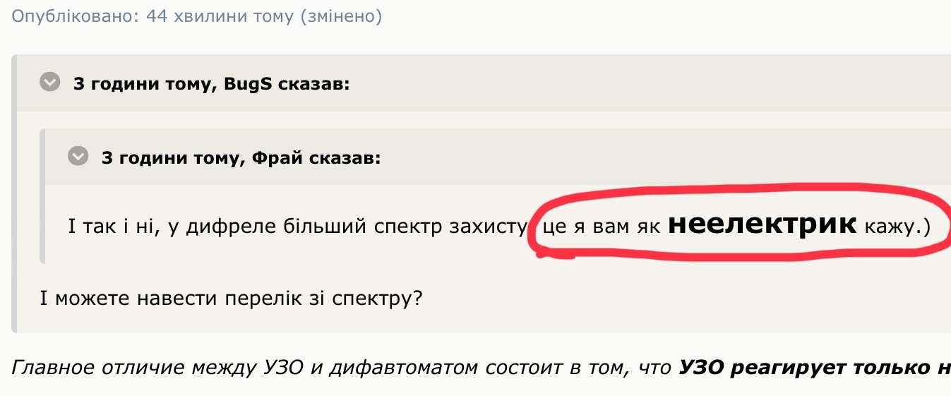 Фрай Опубліковано: 12 грудня 2024 Поділитись Опубліковано: 12 грудня 2024 1 хвилину тому, BugS сказав: 1 хвилину тому, Фрай сказав: Згадав ще одне, у мене стоїть не зовсім узо, дифреле Шнайдер, якщо це принципова різниця. Це те саме І так і ні, у дифреле більший спектр захисту, це я вам як неелектрик кажу.) 1 Посилання на коментар Поділитися на інших сайтах More sharing options...