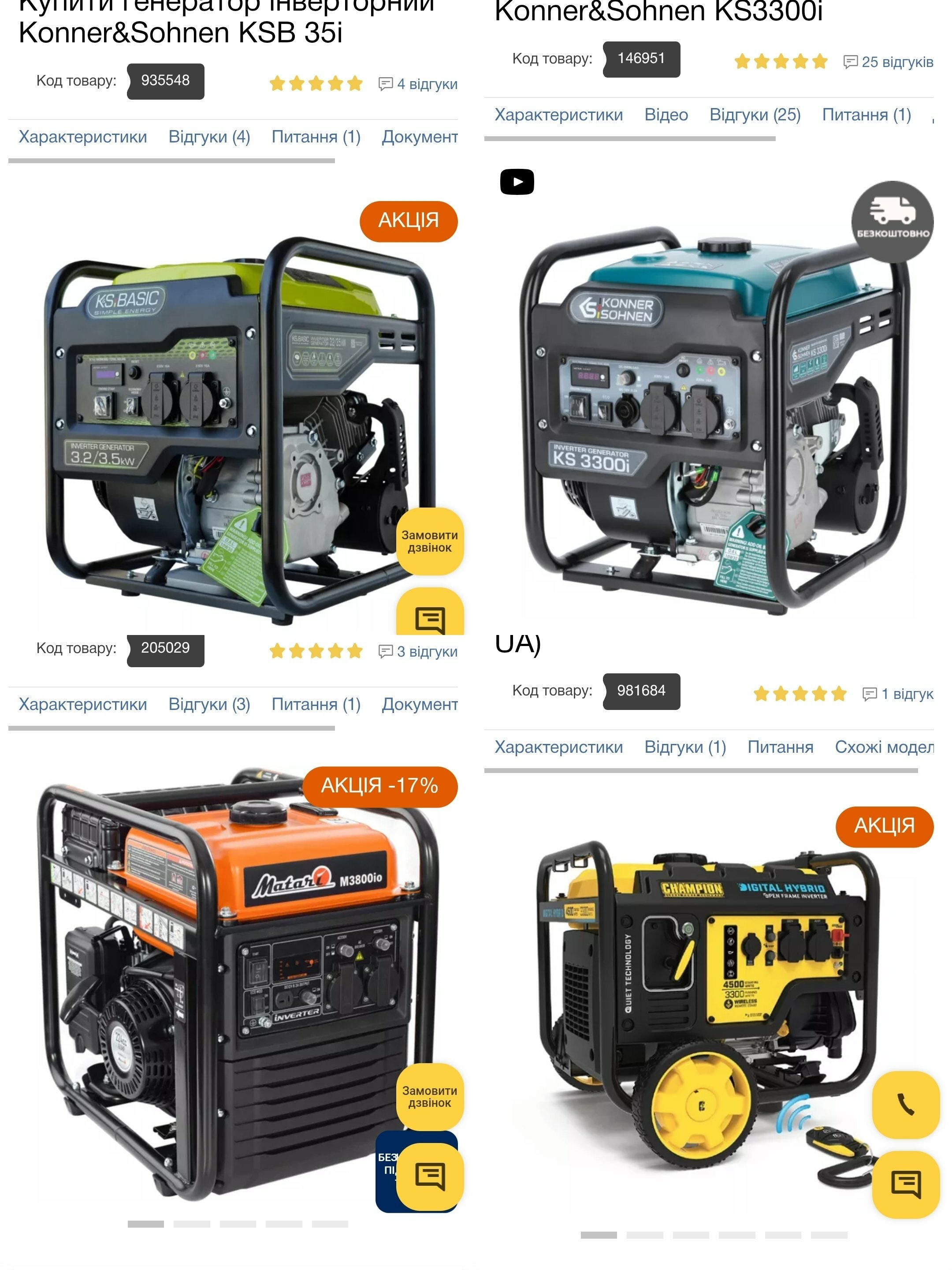 TOP GUN Опубліковано: 1 година тому Поділитись Опубліковано: 1 година тому (змінено) Доброго дня спільноті. Дім без газу, лише електрика. Потребую поради по вибору інверторного генератору відкритого типу. Чому відкритого? Ціна і місце встановлення генератора далеко від дому, шум не заважає. Потреби по домогосподарству як у всіх зараз: Вода ( насос Водолій 63) Холодильник+ морозильна шафа Небагато ,15 кв.м, електричної підлоги Індукційна плита. Інверторні кондиціонери Арктик на випадок якщо єлектрокотел довго не буде працювати. Звісно на час виключення світла можно і зачекати, але 2 маленьких онуків потребують більшого комфорту ніж дорослі. Звісно, що потрібно і можно купити "божественну Хонду" або нічого, але ж...... Вибір зараз між 4 моделями. Приблизно 3-3,5кВт Всі з режимом "Eco mode" 1. Інверторний Konner&Sohnen KSB 35i storgom.ua/ua/product/generator-invertornyy-konner-sohnen-ksb-35i.html 2. Інверторний генератор Konner&Sohnen KS3300i storgom.ua/ua/product/konner-sohnen-146951.html 3. Інверторний генератор Matari M3800IO storgom.ua/ua/product/matari-205029.html 4.Інверторний генератор CHAMPION C4500IE (500573-UA) storgom.ua/ua/product/invertornyy-generator-champion-c4500ie.html З можливістю підключення газу з балона. Більше за все дивлюся на CHAMPION C4500IE , але він якийсь "мутний". Можливо ще щось цікавого порадите. Дякую. Змінено 1 година тому користувачем TOP GUN Посилання на коментар Поділитися на інших сайтах More sharing options...
