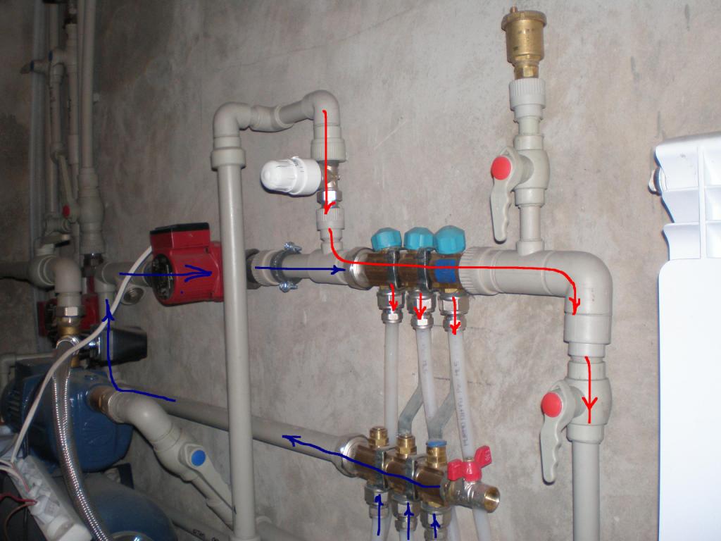Santehpro Опубліковано: 25 грудня 2010 Поділитись Опубліковано: 25 грудня 2010 Не видно, где контур теплого пола соединяется с обраткой системы отопления. По идее, термоклапан не должен работать никак, нужно смеситель применять для теплого пола. Без него сложно обойтись. Теоретически, движение может быть, но это зависит от сбалансированности насосов теплого пола и системы отопления. Кажется, насос на ТП слишком мощный. И ставить его нужно было после ввода подачи из СО Коллесторы есть в сборе. Цена сходная. Лучше использовать их. Посилання на коментар Поділитися на інших сайтах More sharing options...