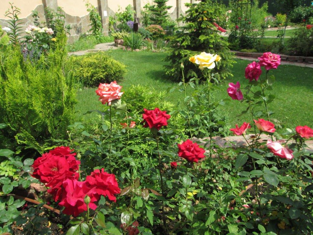 В 2009г. мы занялись участком. Между нашим забором и озером была полоса 3-4м "ничейного" берега, который был успешно превращен в захаращенный мусорник, как всегда в нашей стране почему-то получается . Кроме того, песчаный берег озера начал сильно осыпаться, неумолимо приближаясь к дому. Обратились в сельраду с просьбой разрешения на укрепление берега, через полгода где-то получили его (о, чудо!). Прошлой осенью и весной вгатили чудовищное количество денег и бетона в подпорные стенки с подземными бетонными перемычками. В 2010 г. сами придумали себе "ландшафтный дизайн", сделали его, засадили газон и клумбы, посадили саженцы, поставили беседку и сделали стационарное барбекю. Дорожки, камень, плитку, барбекю делали строители, а всё остальное (земельные работы, газон, посадки-пересадки) - сами, своими силами.