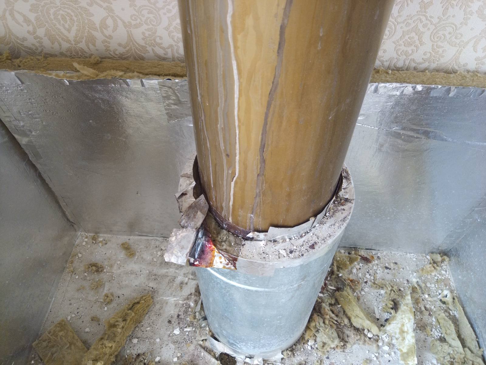 Фото 4: Дымоход с подтеками и мокрым утеплителем