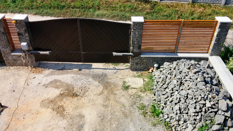 LoopAll Опубліковано: 8 вересня 2014 Автор Поділитись Опубліковано: 8 вересня 2014 С забором дело было так... Имея на руках все заранее подготовленные чертежи и эскизы, мы позвали бригаду бравых мальчиков с лопатами и начали рыть окопы траншеи по периметру участка. Экскаватором по ряду причин это сделать было невозможно. Они же должны были дальше заниматься заливкой фундамента в земле, но, как обычно, начали за здравие - закончили... Сами знаете чем. Получив оплату за землеройные работы - бригада ушла в глубокий загул, в результате чего была отправлена восвояси. Прогноз погоды обещал скорые дожди, искать новую бригаду уже было некогда - так то вынужден был взяться за установку столбиков и заливку в земле (лицевой стороны забора) самостоятельно (тем более, что перекопали мне заезд в гараж , парализовав тем самым всю мою деятельность). Дело шло медленно, но уверенно. Как раз к дождю самый ответственный участок был закончен (почти 20 погонных метров, глубиной около 60 см). Затем прошли две недели дождей (я был очень доволен, что удалось залить лицевую часть забора и освободить из плена автомобиль). Всё это время мы думали, из чего делать фундамент, сам забор. Решили, что лицевая сторона будет из бута, столбики из какого-то кирпича, а забор из дерева, боковые стороны фундамента собирались залить бетоном, поставить столбики, а с забором думать уже позже. Нашли бригаду, которая взялась решать наши задачи. В процессе решили все-таки потратиться и вымуровать весь фундамент по периметру и столбики из камня. Несмотря на значительное удорожание, мы решили, что такой фундамент будет намного надежнее и долговечнее, ну и красивее, разумеется. И мы не ошиблись. Это всё дело накрыли светло-серыми крышками из бетона. Получилось очень красиво. . Тем временем нашли в интернете форму ворот, какую нам хотелось бы видеть усебя и внешний вид. Адаптировали ее под наш забор, придумали как сделать и заказали их изготовление (каркас и автоматику). Заполнить ворота и калитку придумали одним из вариантов блок-хауса под названием "фальш-брус". Все работы по дереву пришлось взять на себя, поскольку изготовители ворот умудрились изувечить привезенное им дерево до неузнаваемости. Выглядело дерево примерно так: Пришлось всё вышлифовывать, подрезать, подгонять. Параллельно занимался изготовлением секций для забора под кодовым названием "жалюзи". Идею, как водится, подглядел в интернете, определился со способом реализации (самым простым и быстрым). Благо, на чердаке оставалось большое количество хороших досок, просохших там в течении года. Они и пошли в ход, разрезались, выводились в размер, фуговались, шлифовались. К сожалению, процесс сборки забора не был запечатлен на фото, есть только процесс покраски готовой секции: А вот так выглядит забор в законченном виде (если не считать недокрашенные ворота и отсутствие деревянных накладок на места соединения секций): Форма жалюзи смотрится очень бомбически. Не просматривается с улицы, вентилируется, удобна в покраске. В разное время суток очень интересно играет светом, пропуская его под разнум углом. Что еще забыл? А, на воротах стоит автоматика Came. Автоматика отличная, только установщики (фирма "Астика", вам пламенный привет!) - дегенераты. Почему - не буду описывать, отдельная история. На калитке - два замка - обычный и электромеханический, кот
