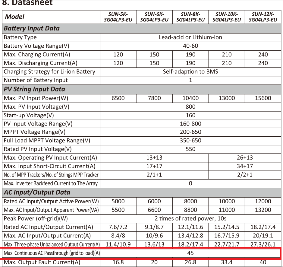 Vikctor Опубліковано: 10 січня Поділитись Опубліковано: 10 січня 51 минуту назад, Roma_Z сказал: Якщо вірно зрощумі, то інвертор на 12 кВт не зможе пропускати більшої потужності тривалий час. Можливо ліпше тоді розглядати 20 кВт інвертор, щоб нічого не переробляти. Вам же наче дали потрібне посилання, де легко знайти що 3-фазний деє 12кВт в байпасі "пропускає" 45А по кожній з фаз. Невже потрібно більше? 2 Посилання на коментар Поділитися на інших сайтах More sharing options...