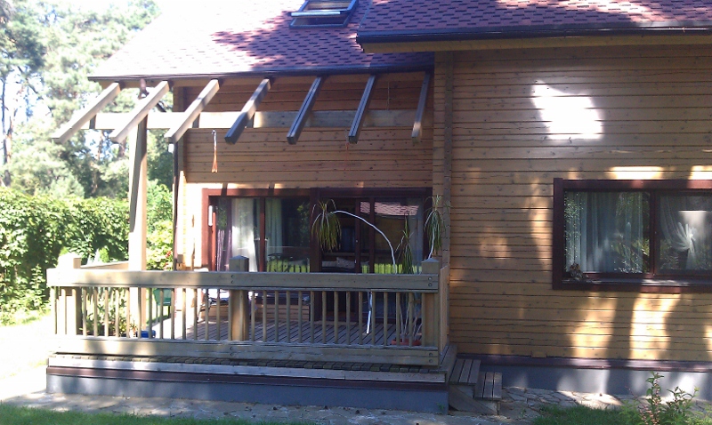 OlegArh Опубліковано: 19 серпня 2011 Поділитись Опубліковано: 19 серпня 2011 Столкнулся с фактом, что грамотно достроить сложнее, чем построить с нуля. Живем в поселке за Вышгородом в деревянном доме из сосны 115 м2. Технология финской фирмы Контио из 95-го бруса +каркас. Почувствовали силы в этом году расшириться за счет террасы на 1 комнату на 1 этаже на 15-17м2. Идея вроде реальная, а вот по технологии и цене реализации никто внятного ответа не дает. Ищу готовых сделать точный проекти воплотить Фотки существующего + задуманного внизу. Кажется "мое" фото из Вашей "оперы";). С проектом и технологией помочь смогу, а вот с работой в Киеве пока что "засада" - Днепр, ведь тоже "не лыком шит":angel:, т.е. строится... Может попозжЕе... Стучитесь, да услышитесь... Посилання на коментар Поділитися на інших сайтах More sharing options...