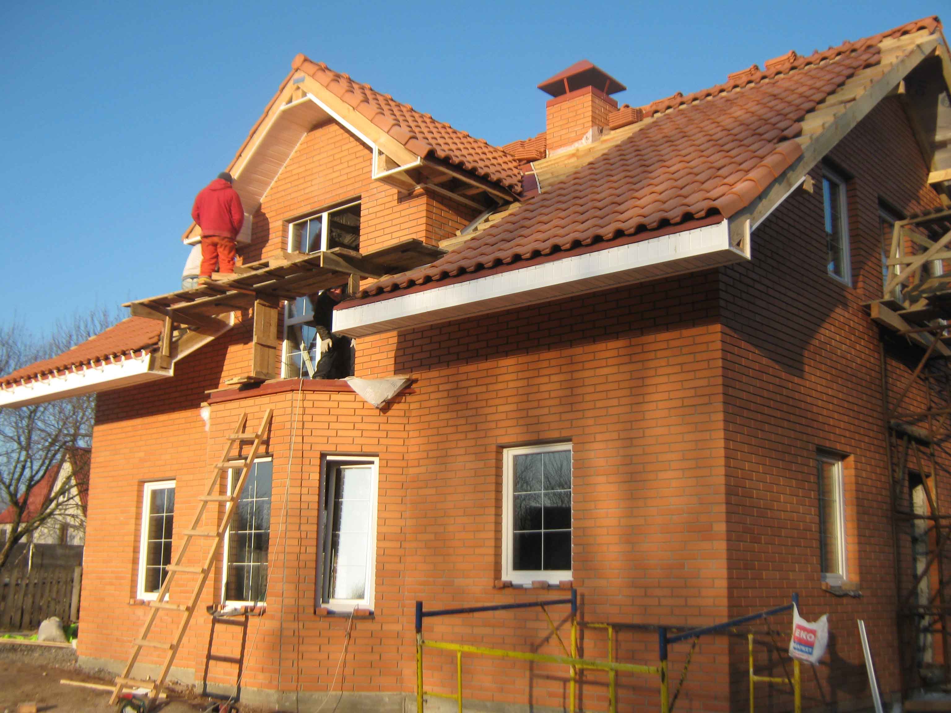 Toma2011 Опубліковано: 24 листопада 2011 Автор Поділитись Опубліковано: 24 листопада 2011 Сегодня не ездила на участок, но прораб сказал, что одна сторона ската уже накрыта, а вот хочу поделиться вчерашним днем.... Если честно, думала будет хуже.... Черепица под цвет кирпича думала сольется, но на мой взгяд будет неплохо. Вот теперь голову ломаю: подшивку, окна и водосточку хочу в белом цвете, а зять спорит, что в коричневом будет лучше, посоветуйте пожалуйста...... Посилання на коментар Поділитися на інших сайтах More sharing options...