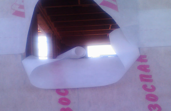 sov1178 Опубліковано: 24 листопада 2011 Автор Поділитись Опубліковано: 24 листопада 2011 ... для правильного расчета отопления нужно считать не только общие, но и конкретно по каждому помещению - для правильного расчета отопления. Так у меня и было по помещениям, но примерно, теперь еще есть для всего дома, но точно (с учетом мостиков холода) Насчет 4,1 кВт - ОЧЕНЬ ОЧЕНЬ и ОЧЕНЬ сомневаюсь. 4.1 это только через ограждающие конструкции. Еще 2.5 на вентиляцию надо подкинуть ;) Я раньше выкладывал файл где по комнатам и вместе с вентиляцией подсчитано. У меня дом, грубо говоря, 9х10, одноэтажный с мансардой. Что-то мне кажется это менее энергоэффективная конфигурация здания и площадь наверное поболее моих 100м2. У меня тепловой контур почти куб - 7.6х8.1х6.4. К тому же сколько на мансарде утеплителя? Так вот, по расчету у меня теплопотери 7,9 кВт при от +18 до +22 (для каждого помещения - своя температура) внутри и -25 снаружи. Это при том, что помещение рассчитывалось как герметичное, без всякой вентиляции. .... ТН 9 кВт тепла, и практика показывает, что мой расчет был правильным. При -33 ночью, в какую-то из зим, тепловой насос работал почти постоянно. Значит у Вас теплее дом, чем по расчетам вышло, причем прилично теплее. 7,9кВт при -25 = 9.3кВт при -33, и это Вы говорите без вентиляции. А на нее еще 2,5-3кВт надо накинуть как минимум. Если взять -33, то у меня 7кВт надо на отопление (учитывая вентиляцию 0,5объема в час и без учета бытовых поступлений). П.С. Да, и интересно, на какого фига откосы утеплять пеной, целлюлозой, ПСБ? Просто так, интересно... Мне будет просто удобно использовать пенопласт 20мм в ходе внутренней отделки откосов (хотя детально этот момент еще не прорабатывал, но там полюбому или пену, или пенопласт придется использовать). А утепление, ИМХО, лишним не бывает... Хотя, если у Вас все равно все с запасом - Вам пофиг О! Золотые слова - уж 9кВт на которые способны радиаторы не напрягаясь мне хватит (а еще и приточку наверное подогревать буду)... За ссылки на программы спасибо - будет время посмотрю что там выходит - сравню. Насчет окон вровень с ОСБ - а Вы что, под окнами отливы делать не собираетесь? Собираюсь, но они, ИМХО, не панацея. Итак про окна . Сегодня готовился к установке (завтра пообещали ставить). Делал, так, как рекомендуют американские видео по установке и статьи с buildingscience. Вобщем разрезаю гидроветрозащиту как перевернутая буква "Y" (фото 1) и еще подрезаю верх. Заворачиваю нижнюю часть на подоконную доску. Вырезаю на подоконник кусок гидроветрозащиты, укладываю его и заворачиваю на стойки проема (на 30см примерно, фото 2). Потом подрезаю и заворачиваю с двух сторон на стены (эти части располагаю по отношению к основно гидроветрозащите, как черепицу - чтобы вода могла свободно стекать по слоям и при этом всегда перетекала из внутреннего слоя наружу) и вниз (эту часть пока не креплю - потом заведу на панель сайдинга, чтобы попавшая вода вытекала наружу). Готовый проем сфотографировать не успел - потемнело - завтра утром щелкну. Вобщем делал примерно, как на рисунке из книги - только роль верхнего и нижнего кусочков у меня выполняет гидроветрозащита. После установки окна, подстановочный профиль проклею соудаловской лентой (под отливом), а с боков и сверху закрою шов кусками изоспана (приклею к раме бутиловой лентой). Кроме того, сверху основная гидроветрозащита будет заведена на маленьк