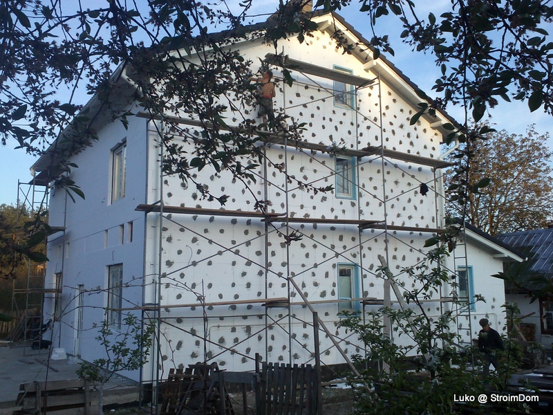 Luko Опубліковано: 13 травня 2014 Автор Поділитись Опубліковано: 13 травня 2014 Продвигаемся дальше. Вопрос по выступу над входной дверью закрыт: решили наростить утеплитель по всей плоскости стены - приклеили дополнительно 30мм. Отливы решила поставить темно-серые, под цвет крыши 5 Посилання на коментар Поділитися на інших сайтах More sharing options...